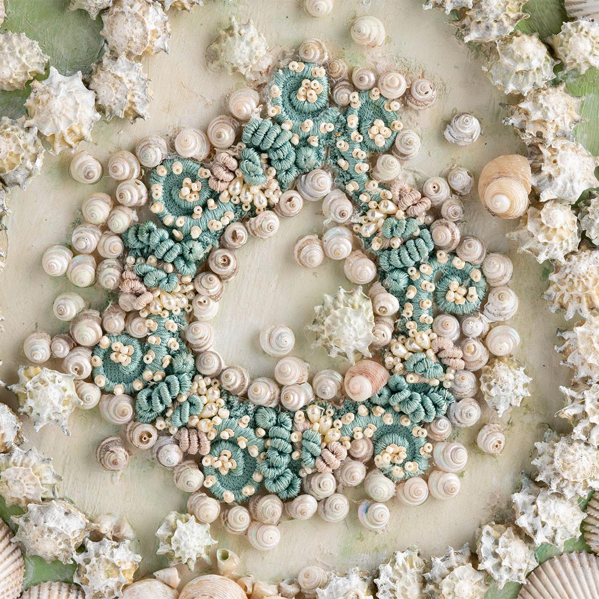 Intricate Design of Shells and Vintage Embroidery