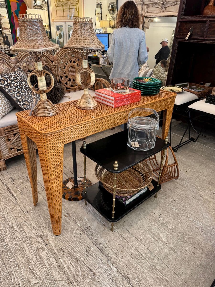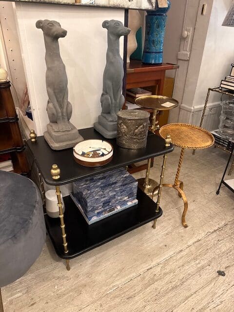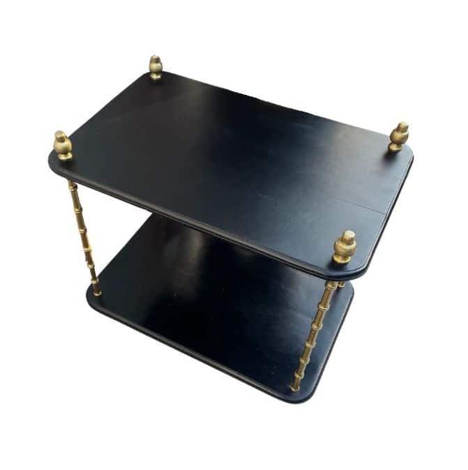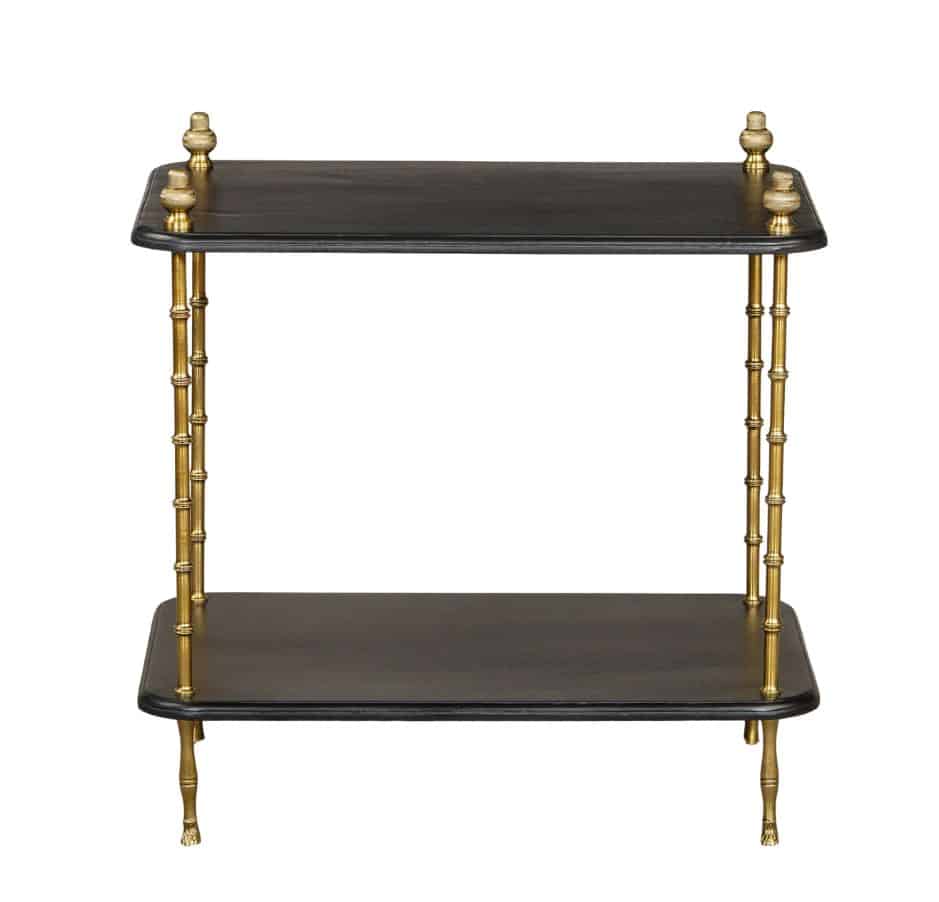 Faux Bamboo Brass and Wood Two Tier Side Table