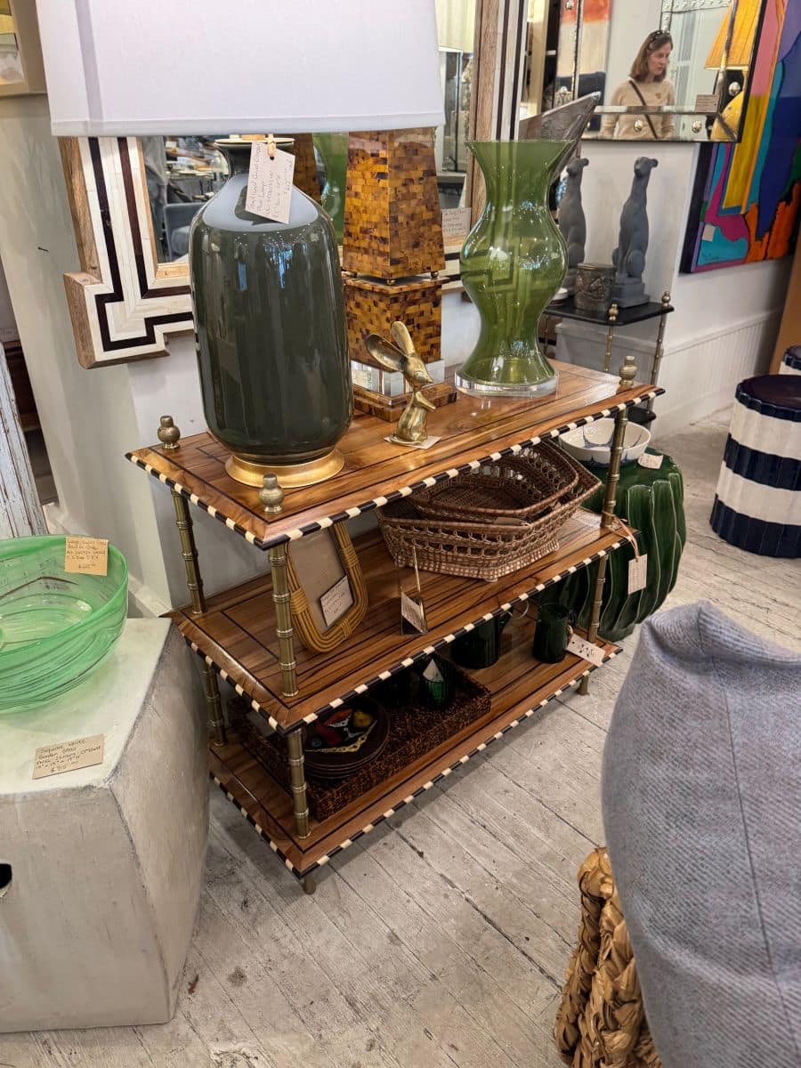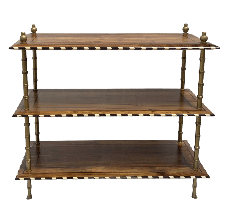 Mecox Exclusive Wooden and Bone Three Tier Side Table with Brass Leg