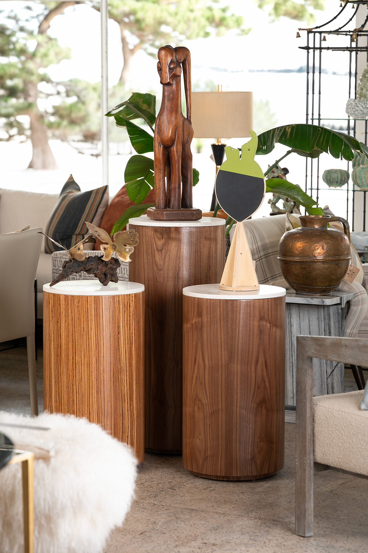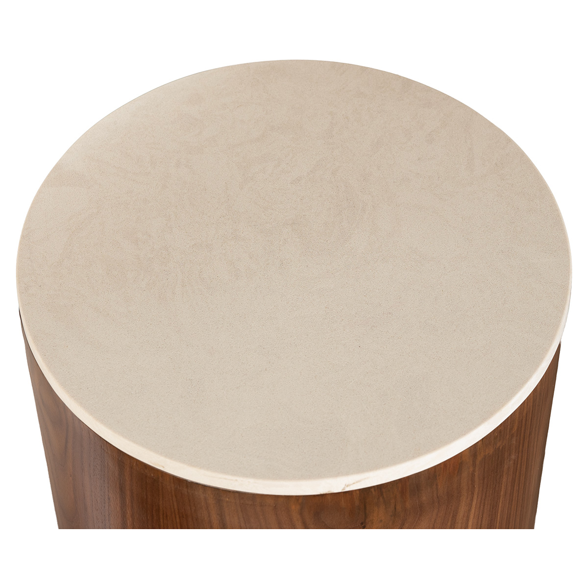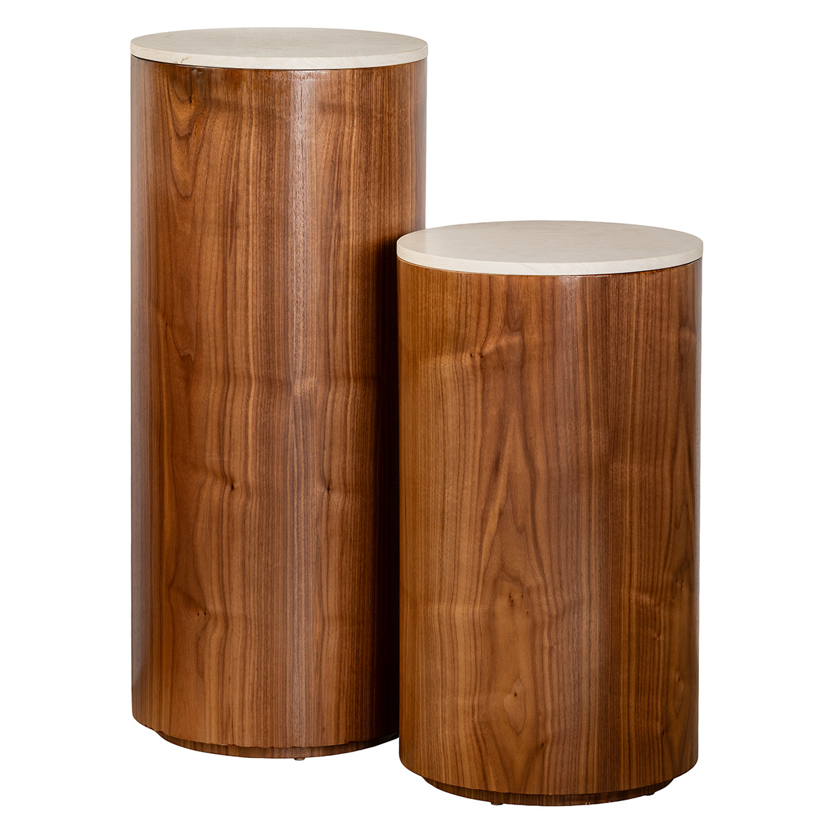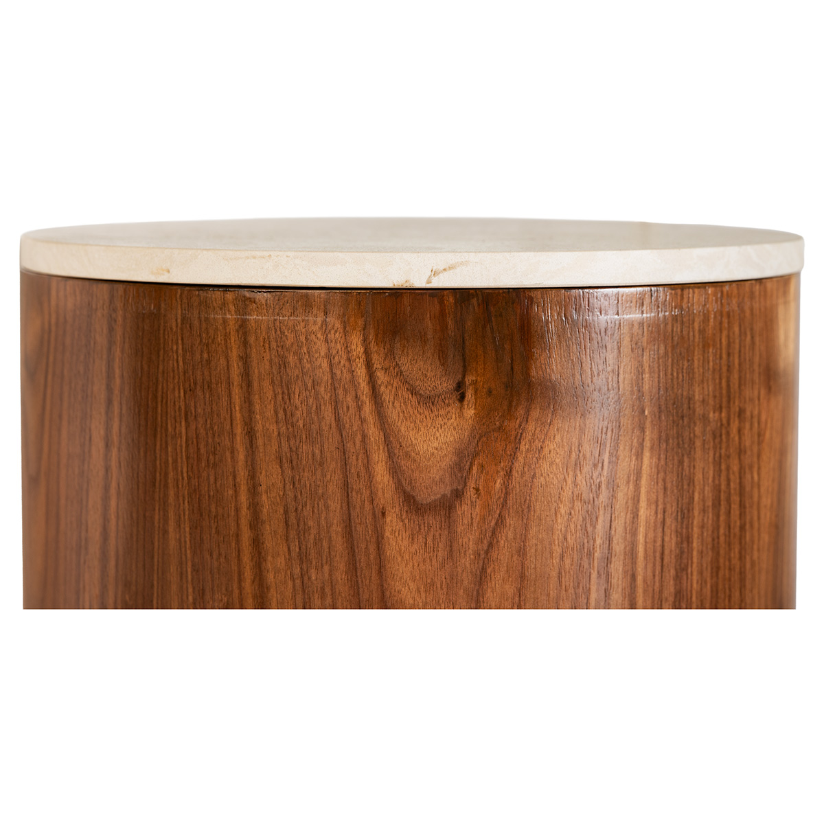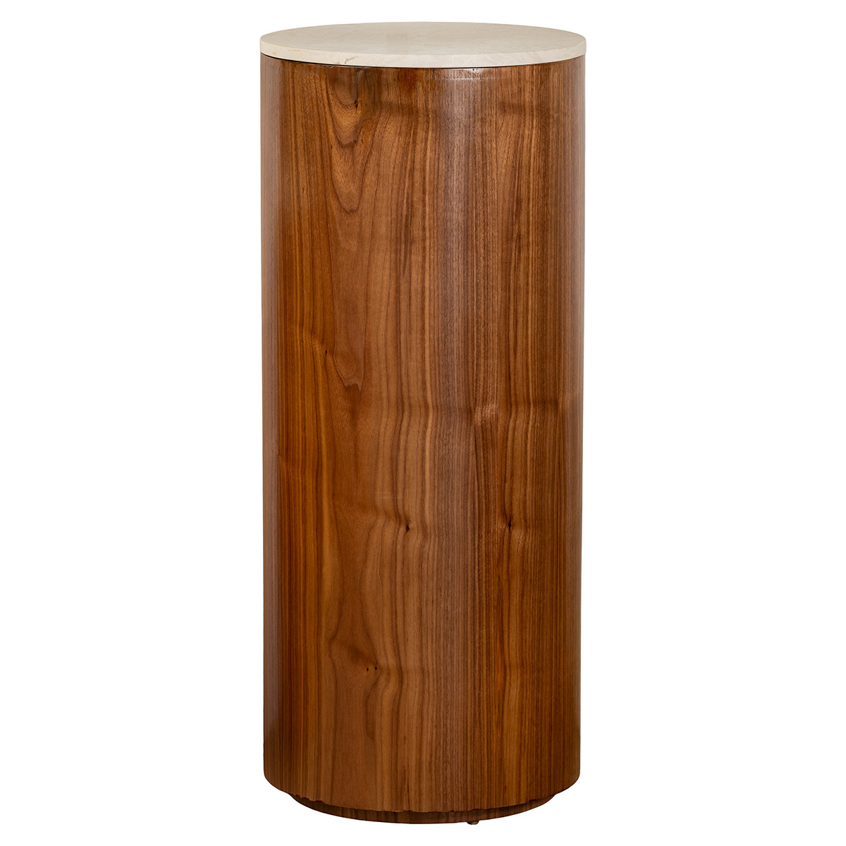 Tall Walnut Cylindrical Pedestal with Stone Top