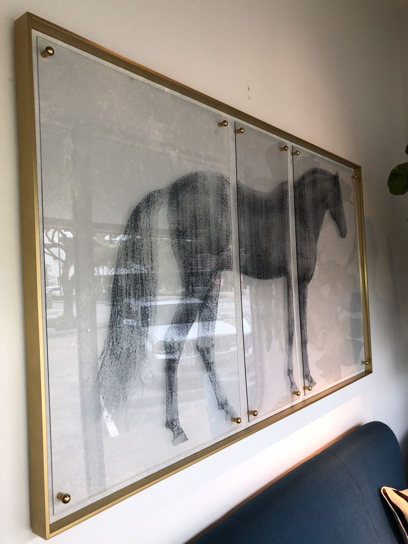 Chasm Horse Triptych of Distressed Charocal Printed on Acrylic
