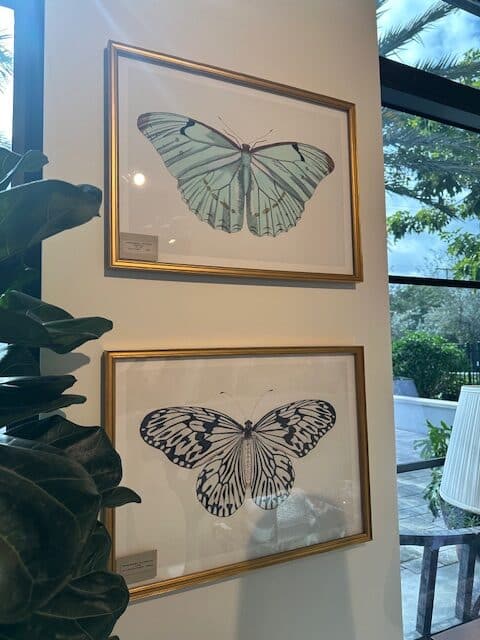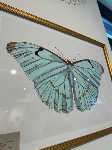 Swedish Light Aqua Butterfly in Thin Antiqued Gold Frame