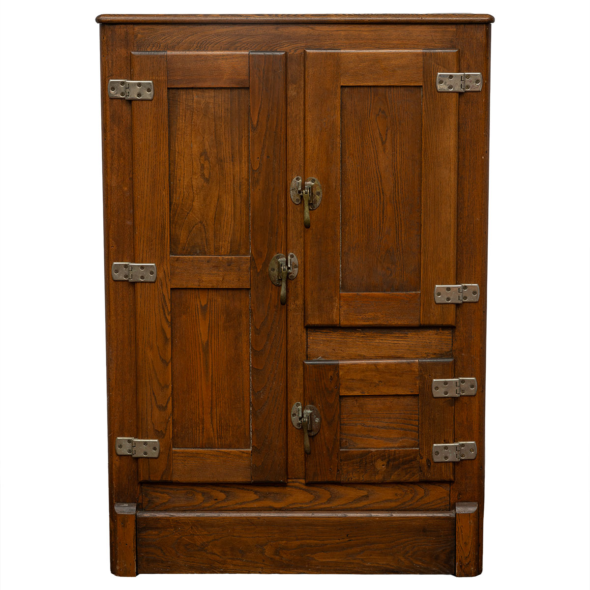 Exceptional Antique Mid 20th Century Vintage Oak Wood “Ice Box” Chest Cabinet