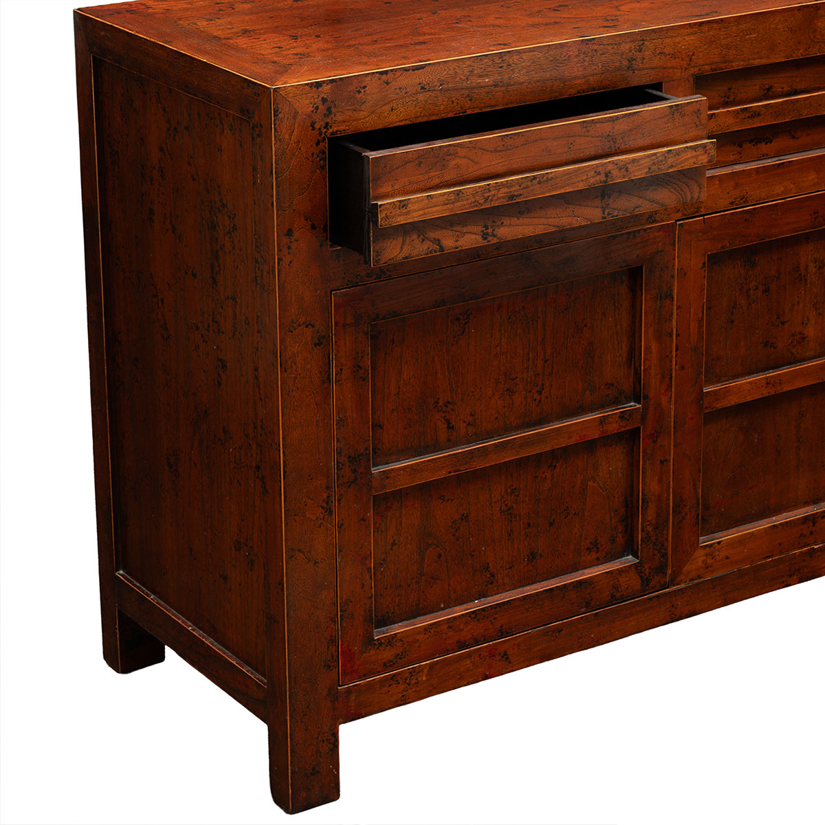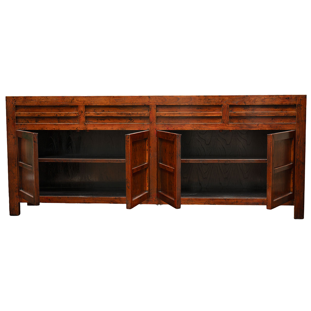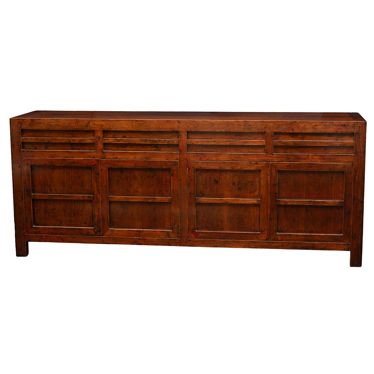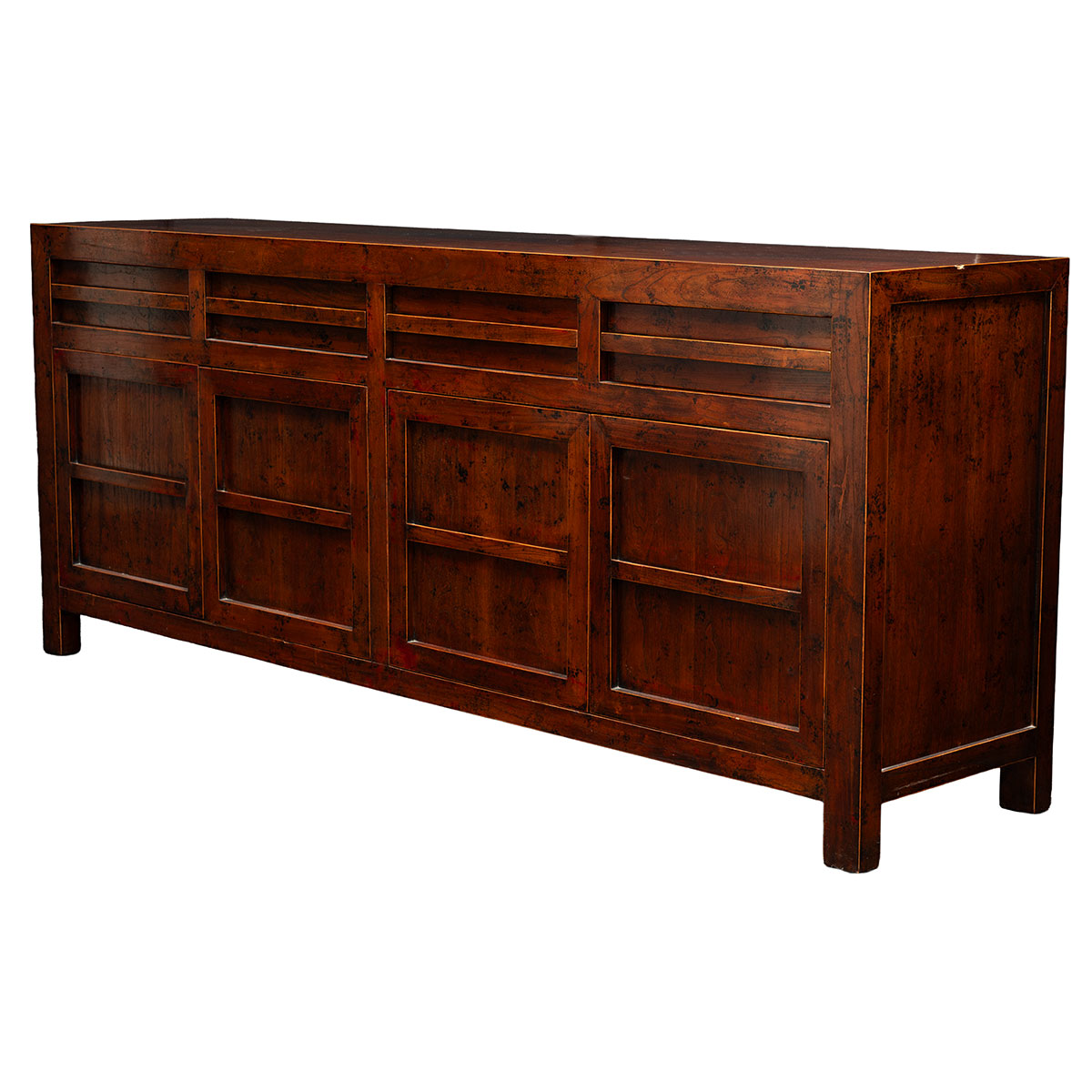 Large Vintage Elmwood Dark Modern Asian Inspired Buffet with Antiqued Lacquered Finish