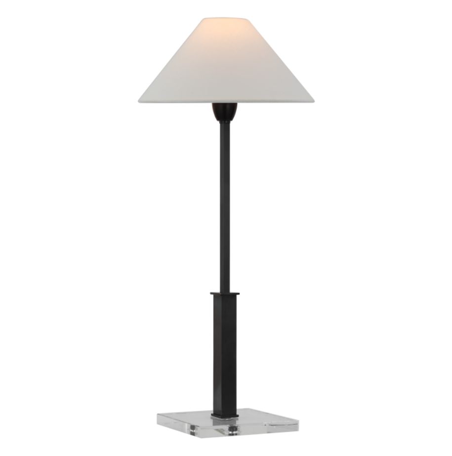 Hand Rubbed Brass with Crystal Base and Linen Shade