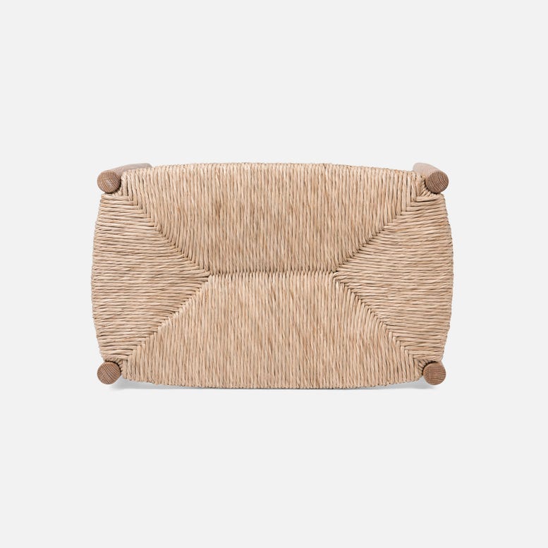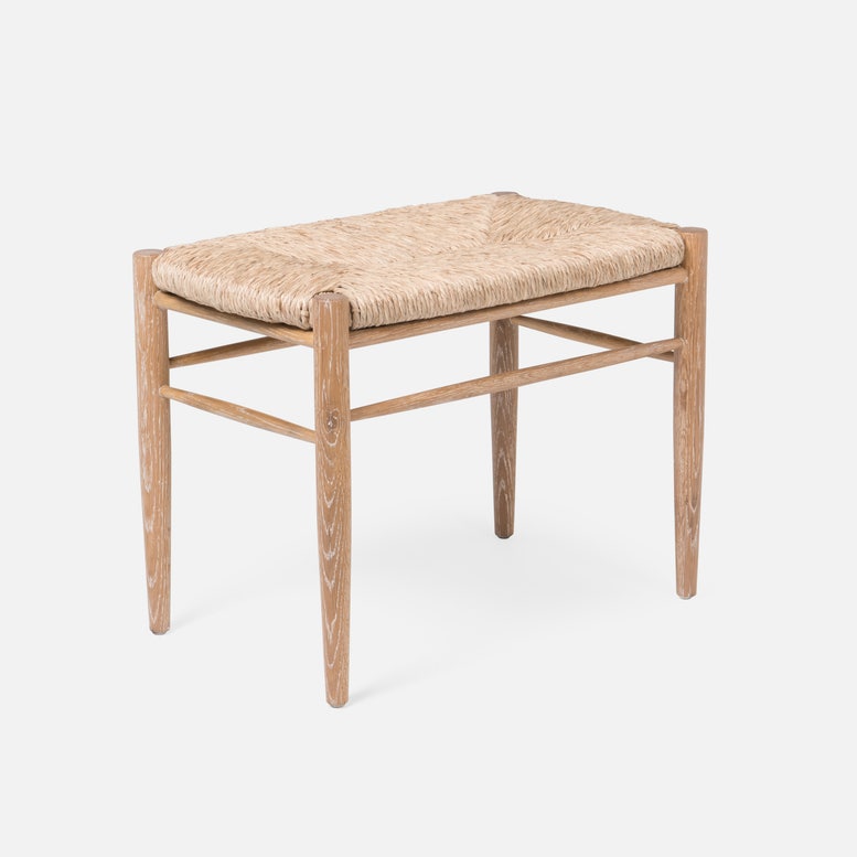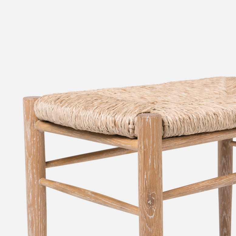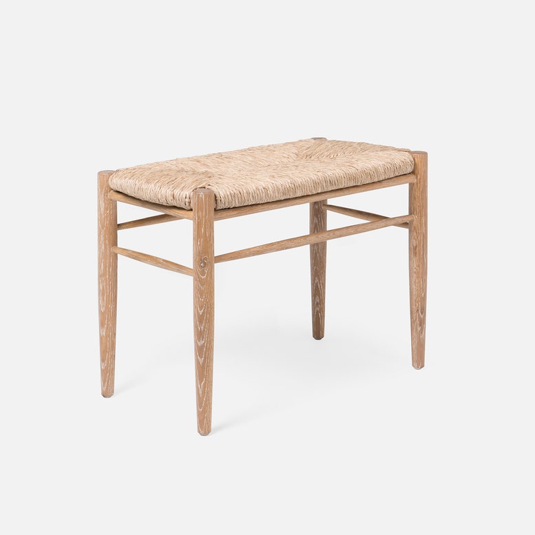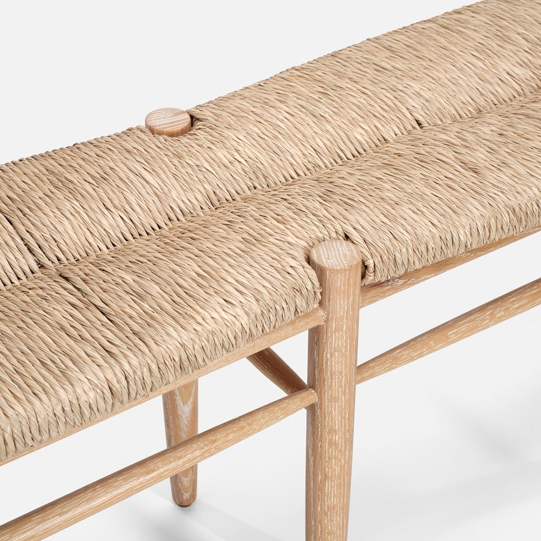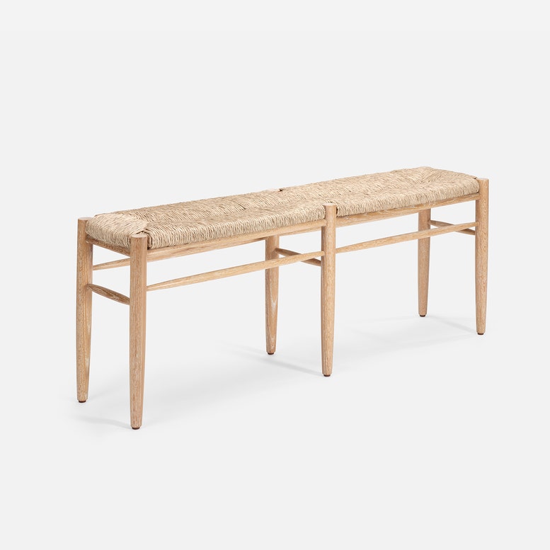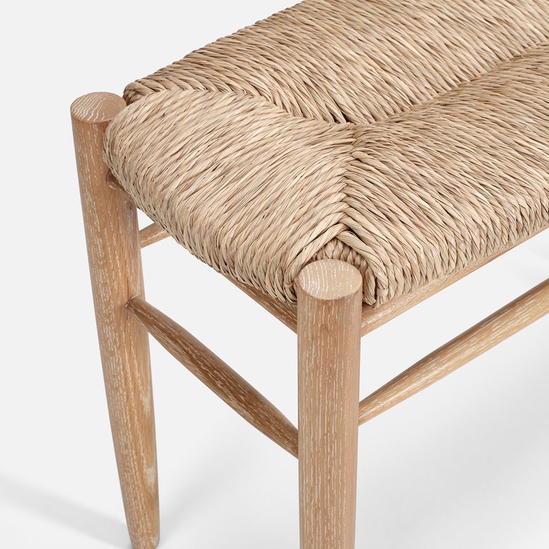 Cerused White Oak Bench with Woven Natural Rush Seat
