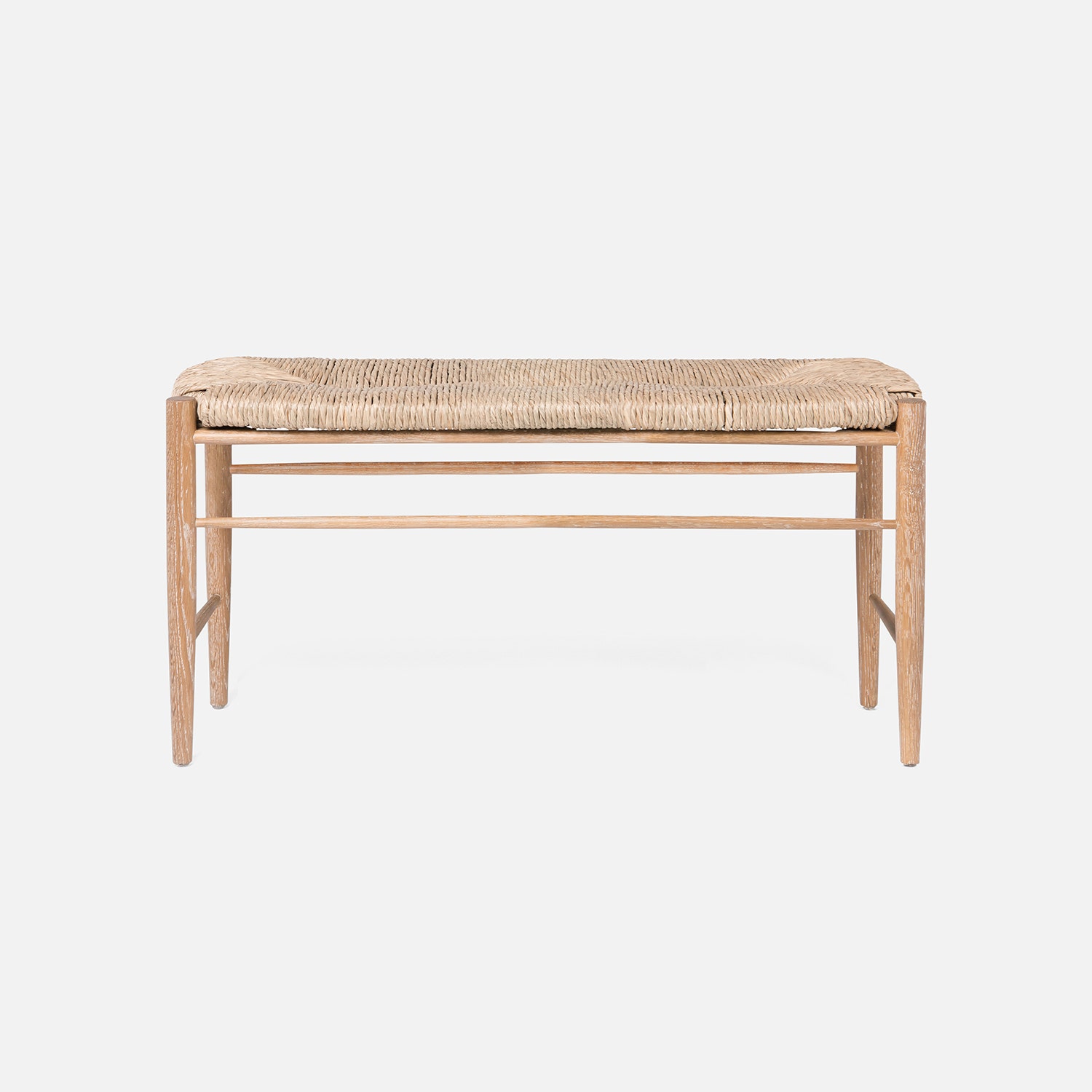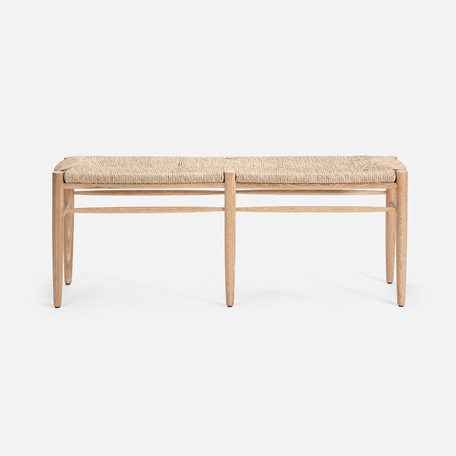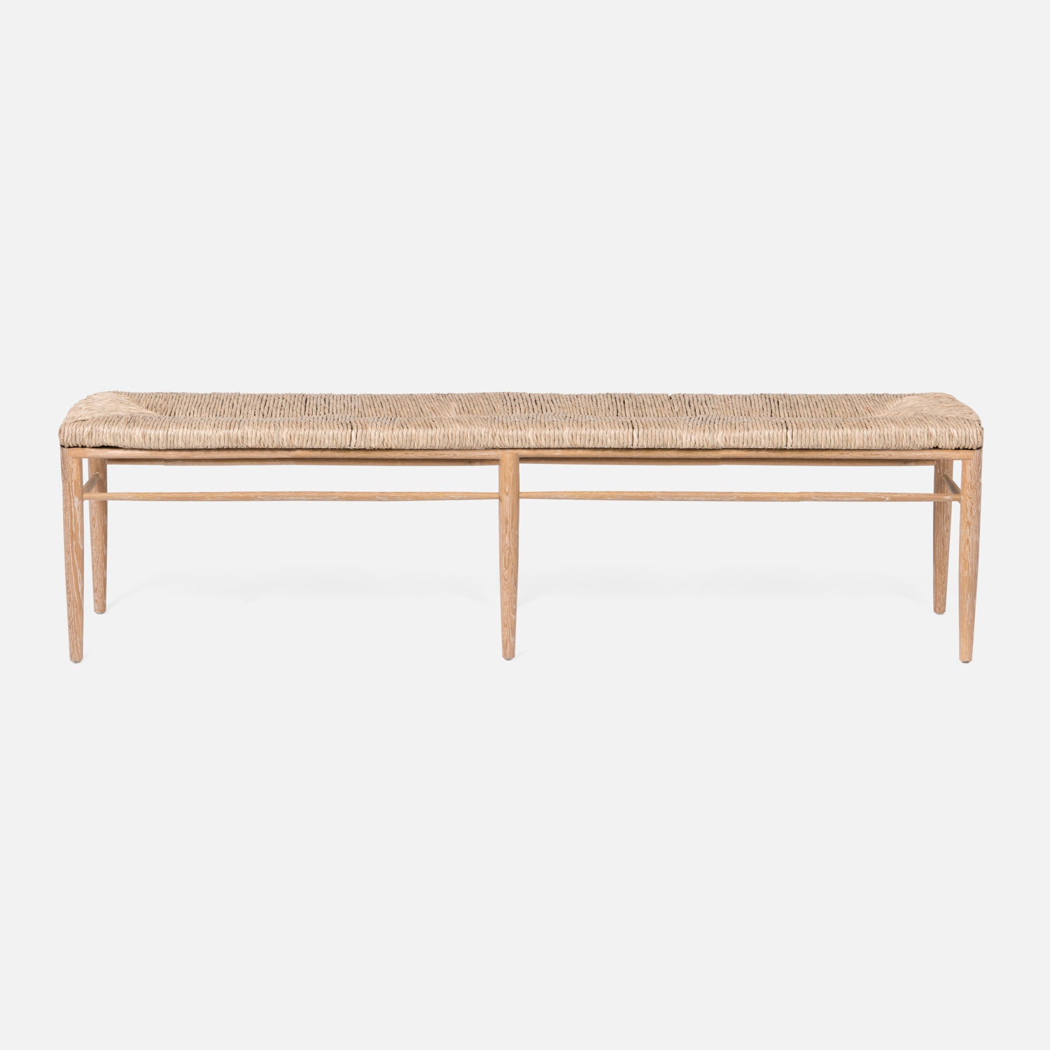 Cerused White Oak Bench with Woven Natural Rush Seat