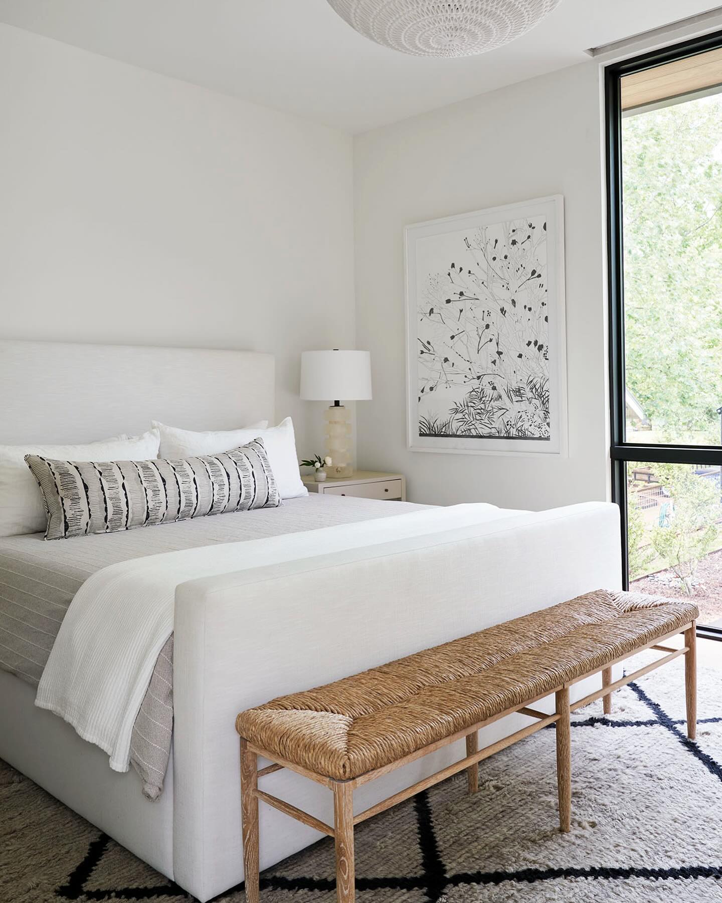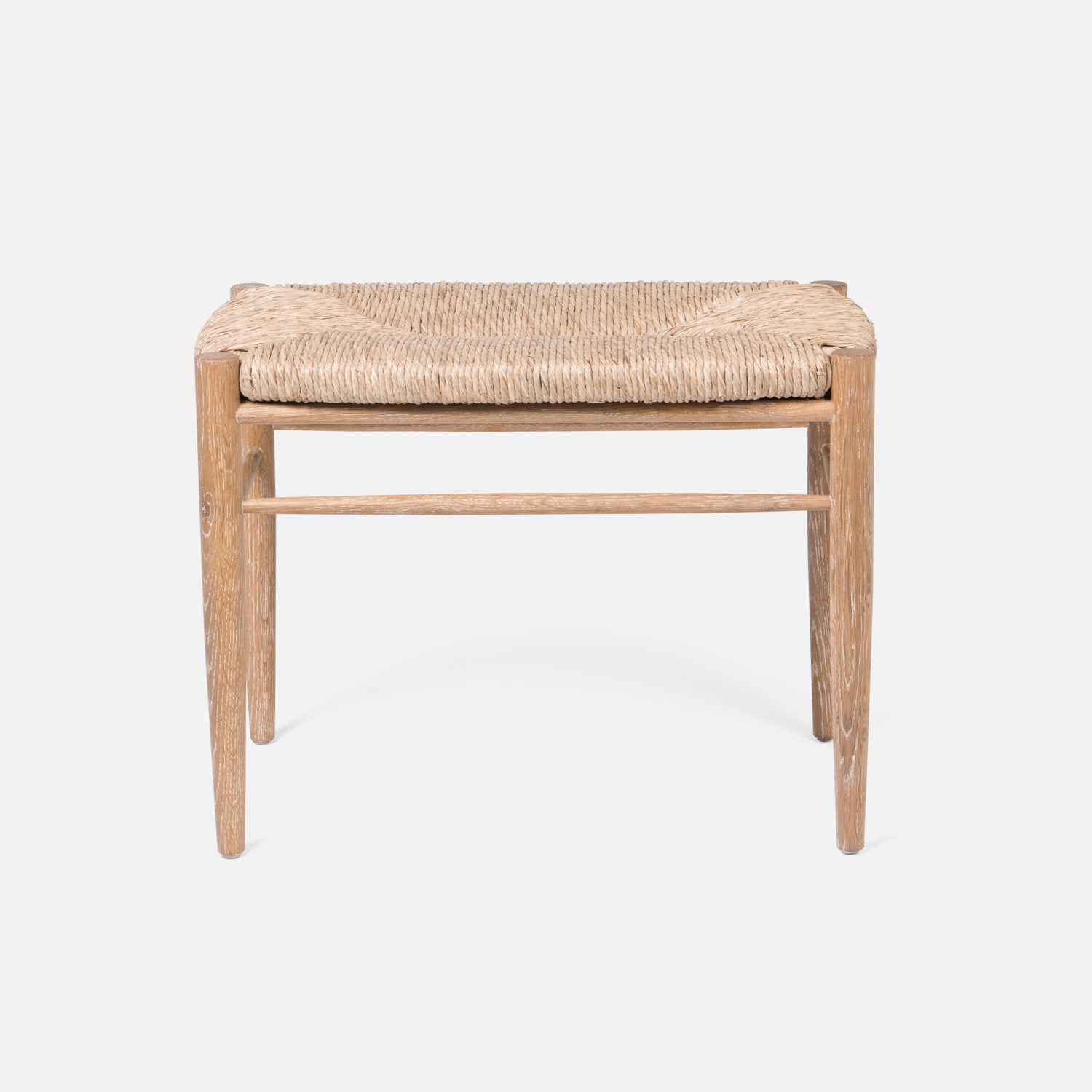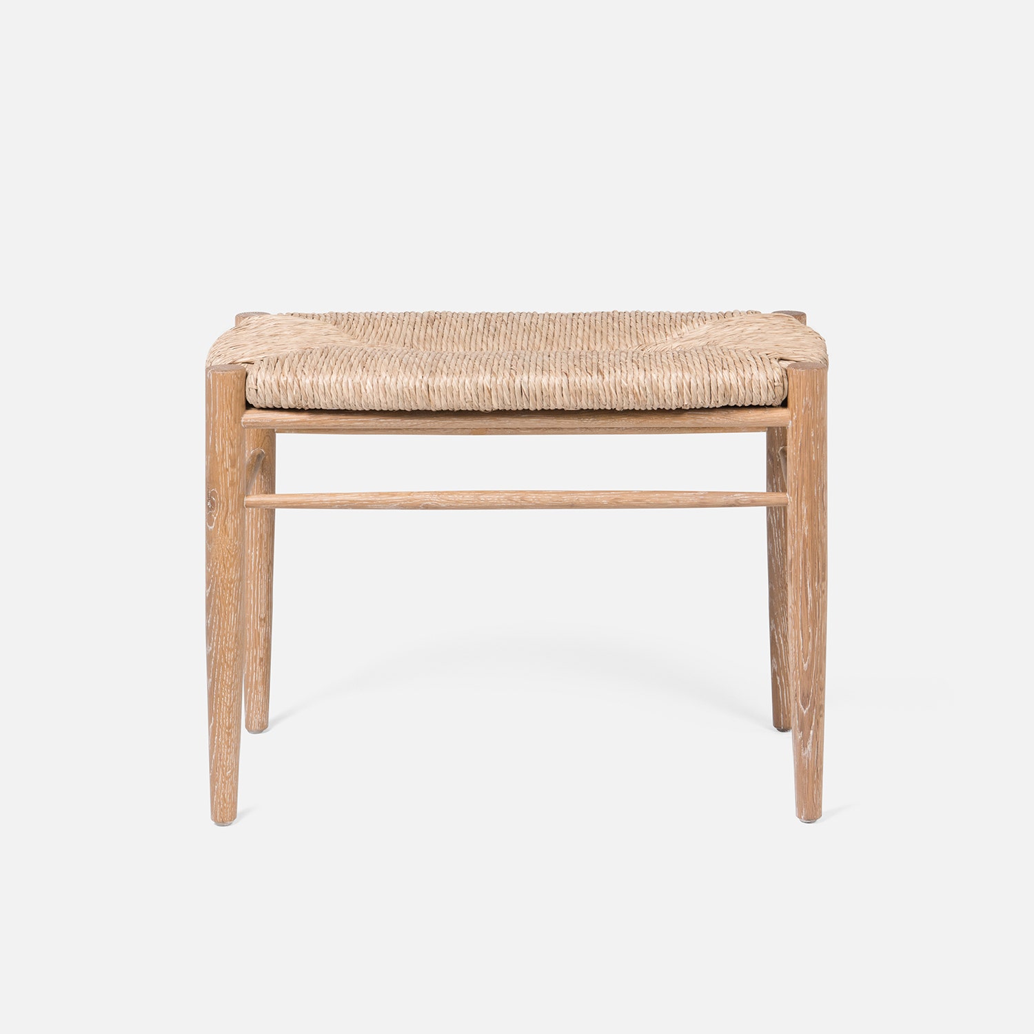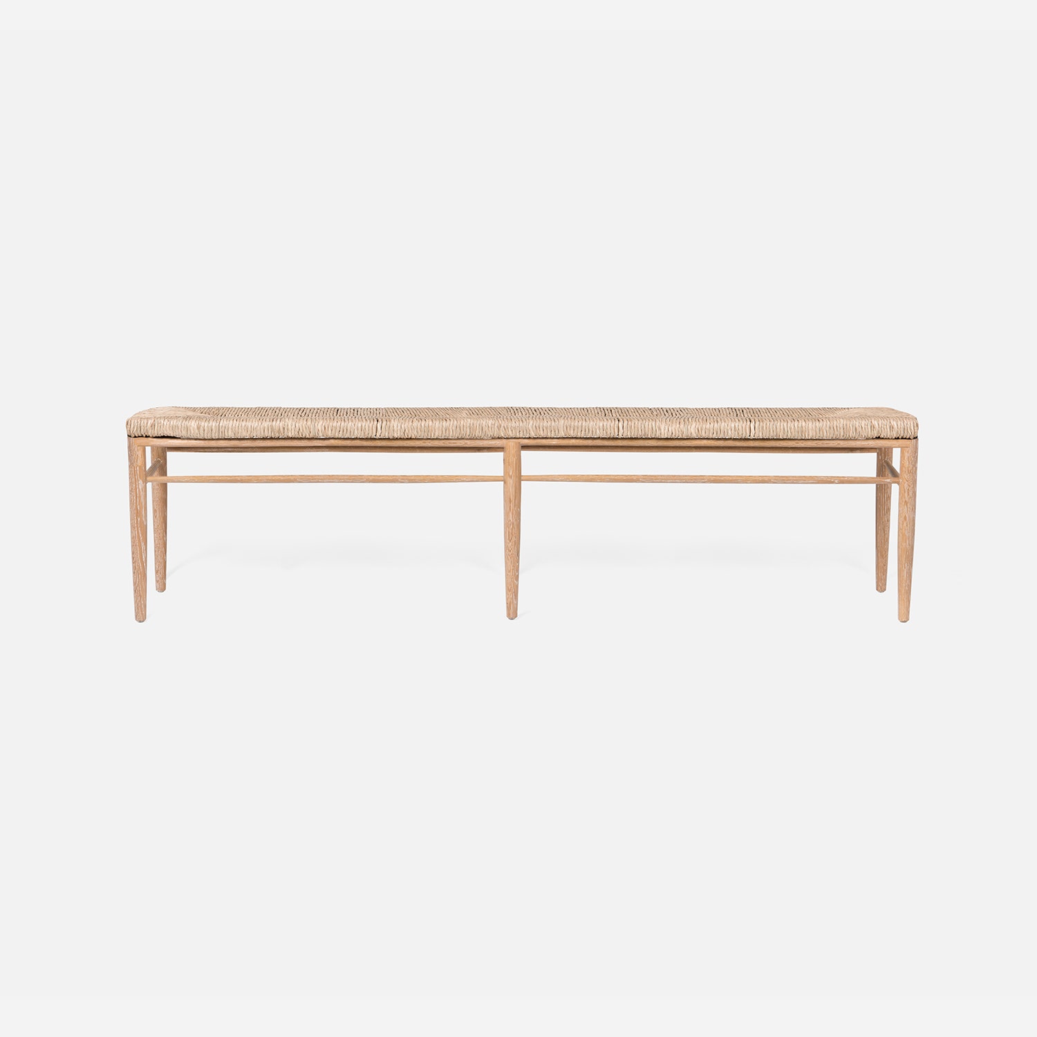 Cerused White Oak Bench with Woven Natural Rush Seat