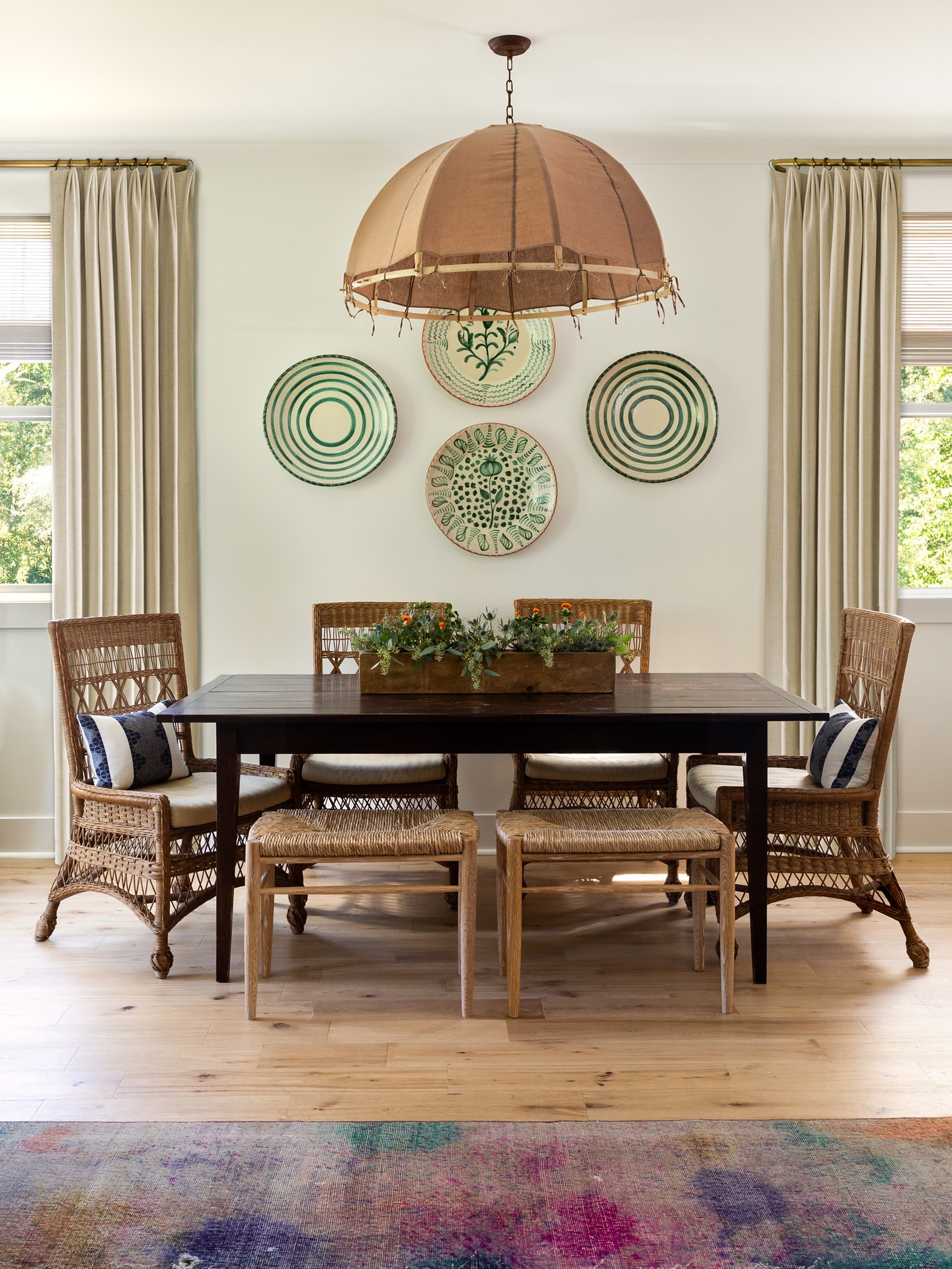 Cerused White Oak Benches with Rush Seats