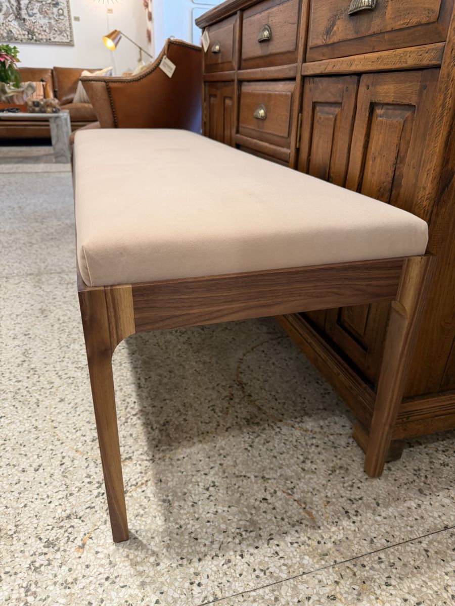 Walnut Bench with Fawn Velvet Seat