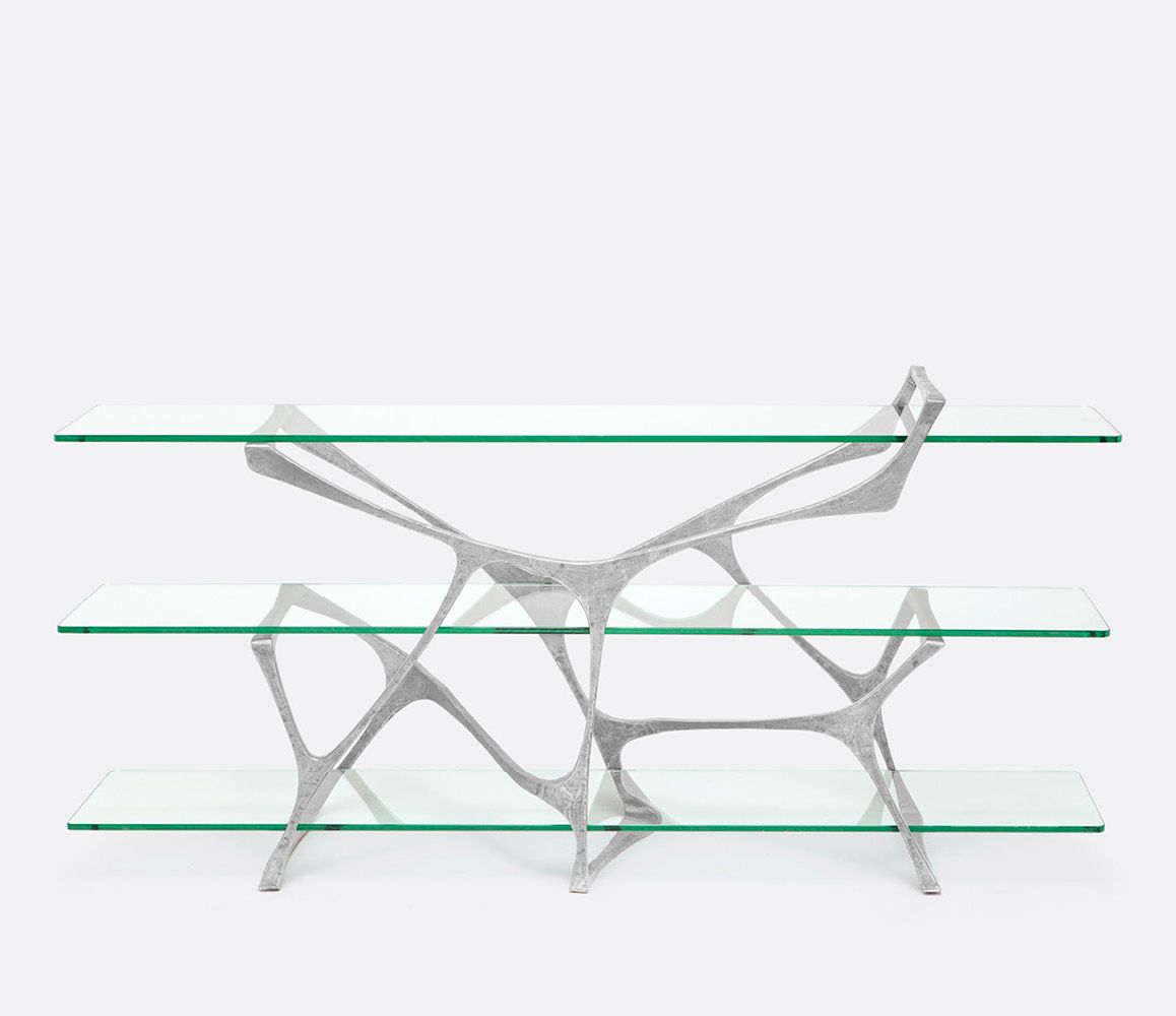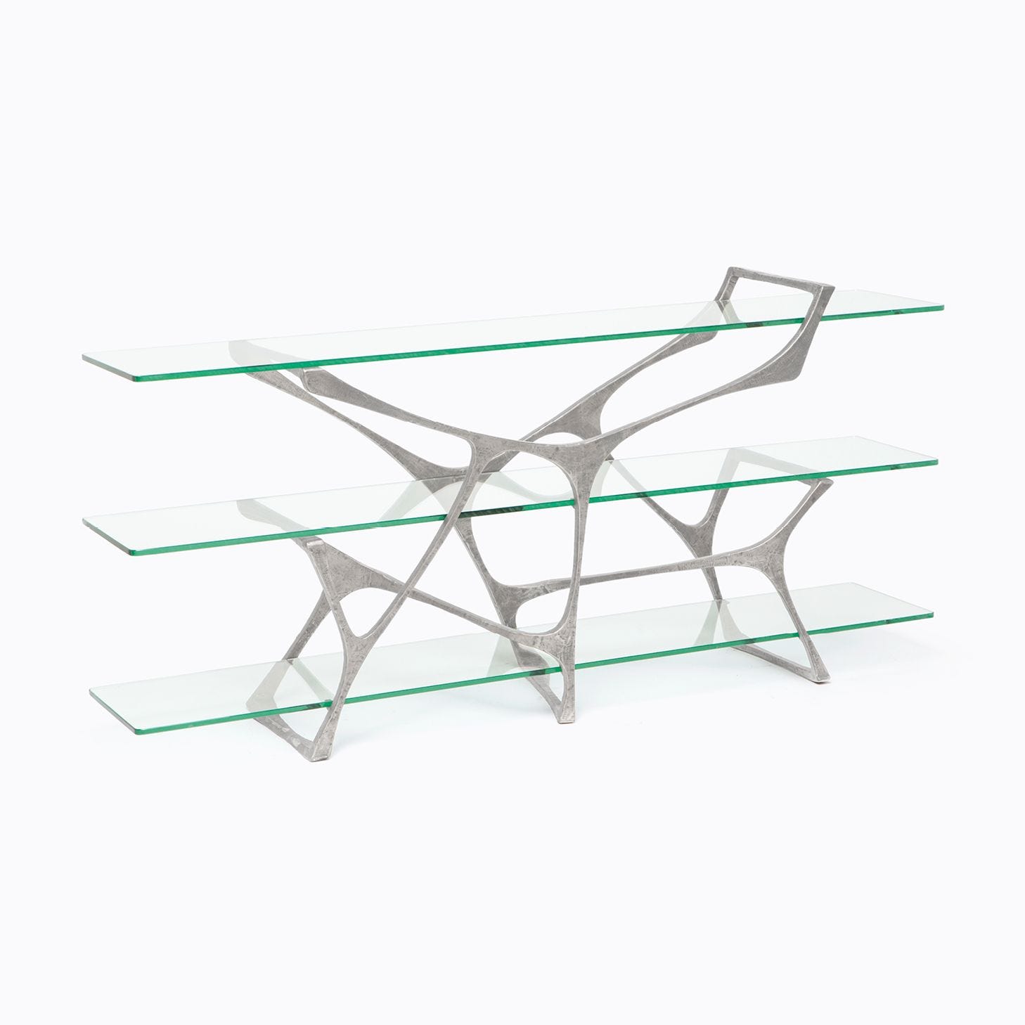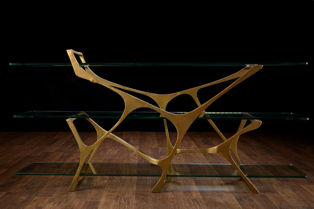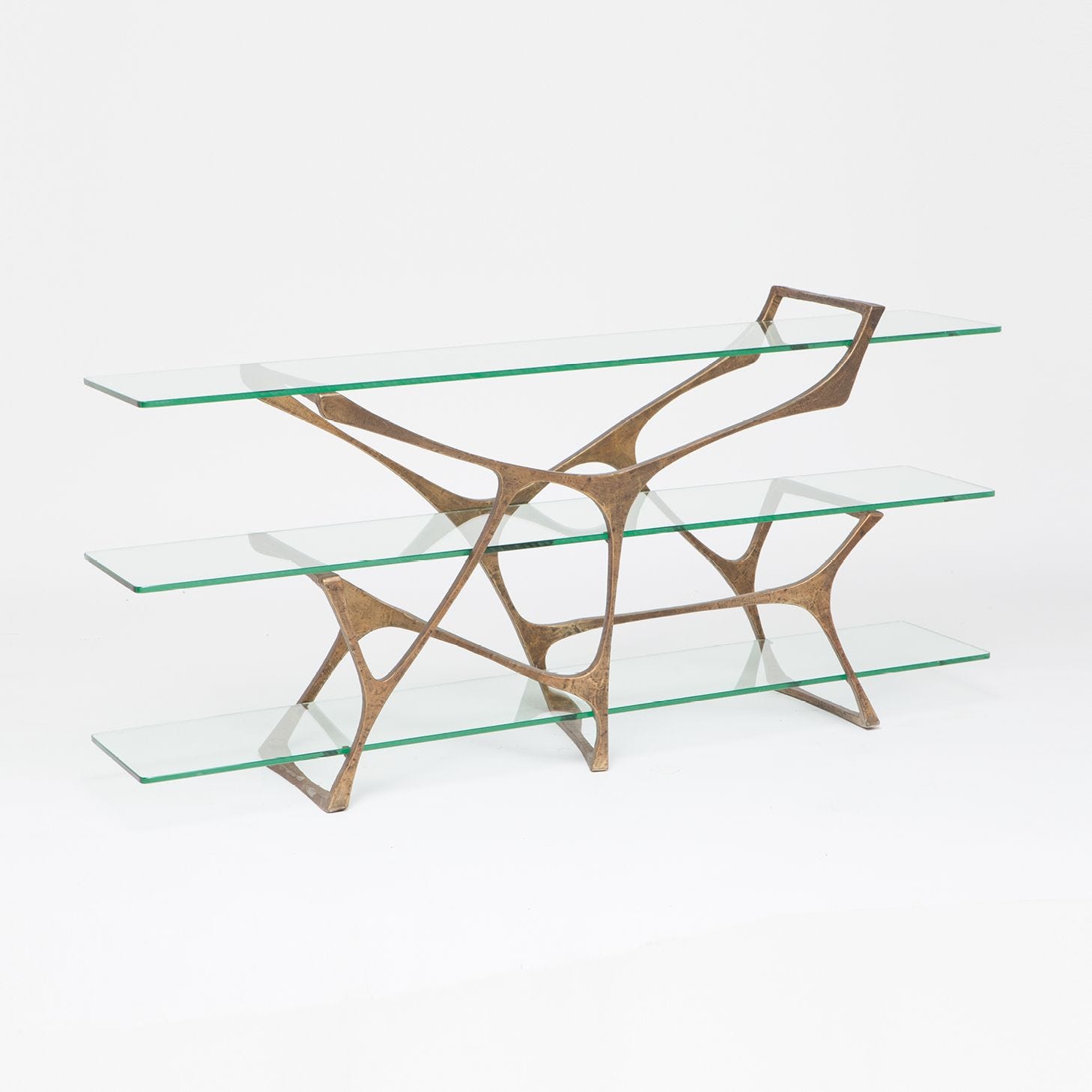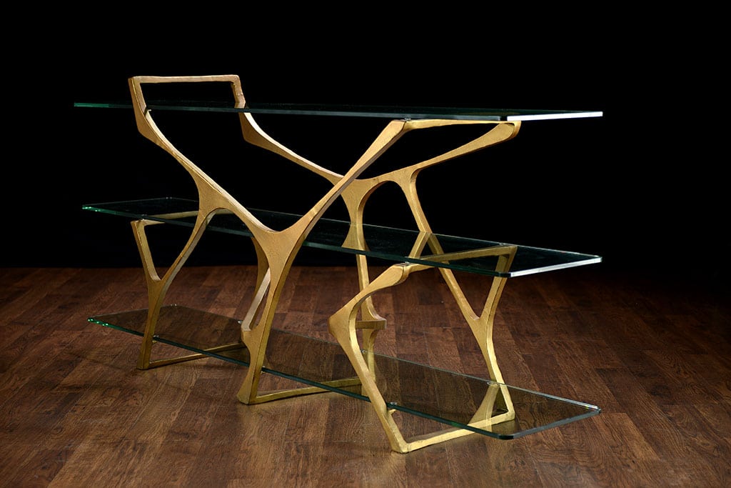 with 3 Tiers in Iron Aged Brass and Glass Shelving