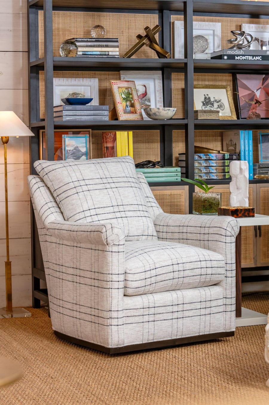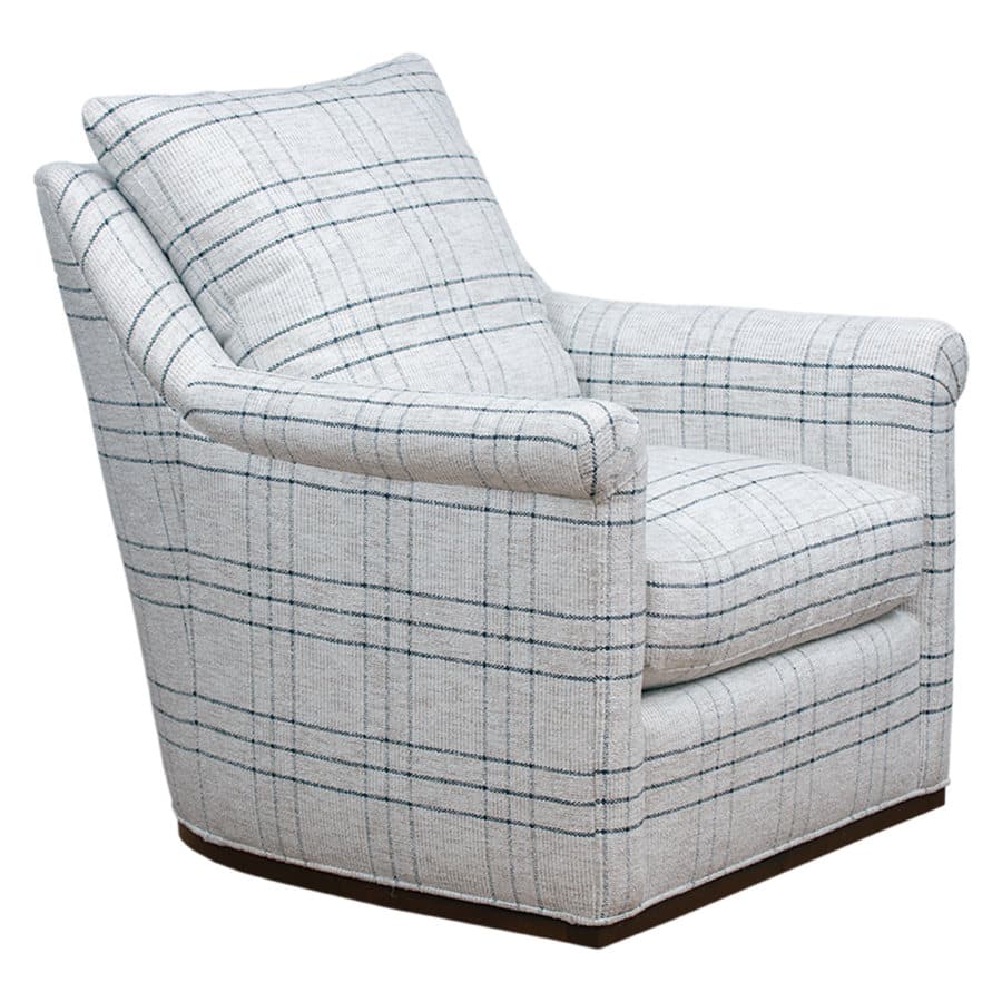 Afton Plaid Swivel Chair with Rolled Arm