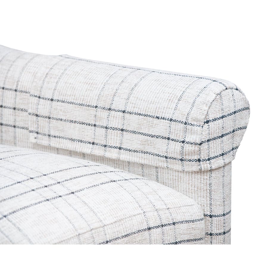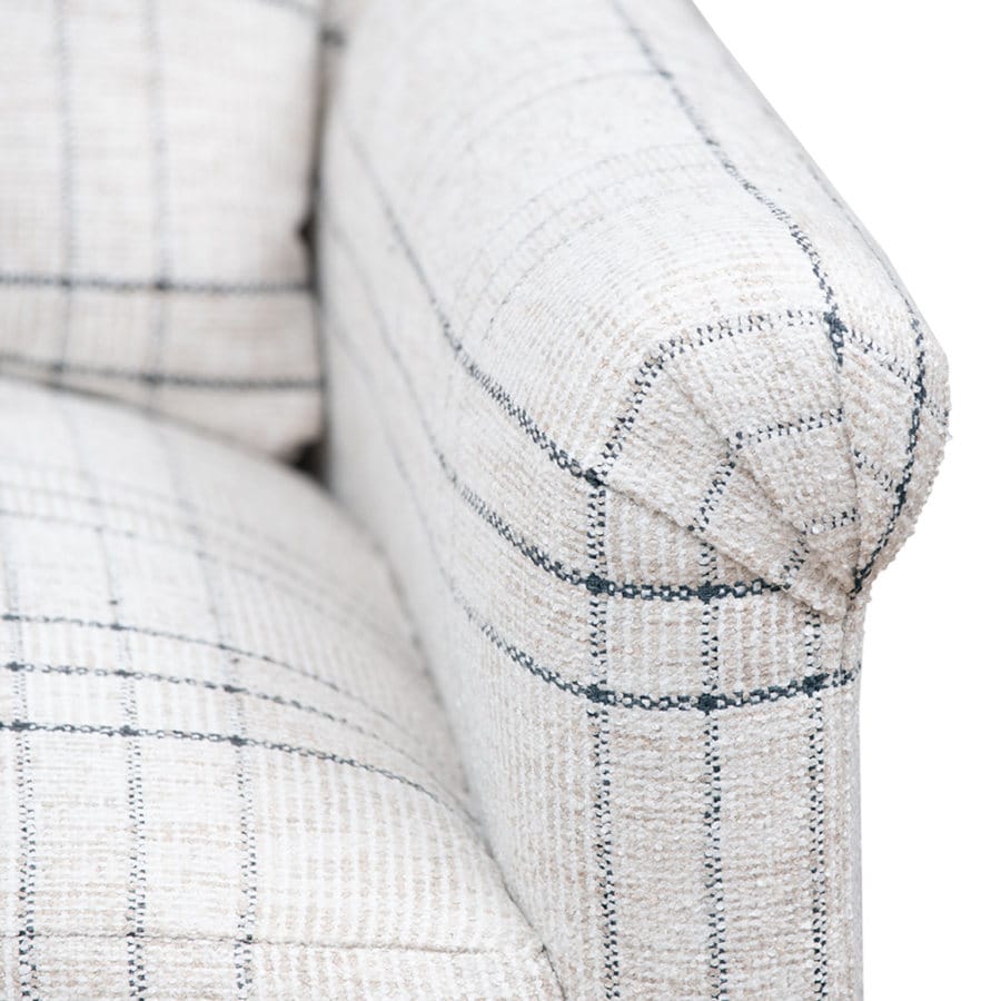 Upholstered in White, Tan and Charcoal Heavy Duty Plaid Fabric