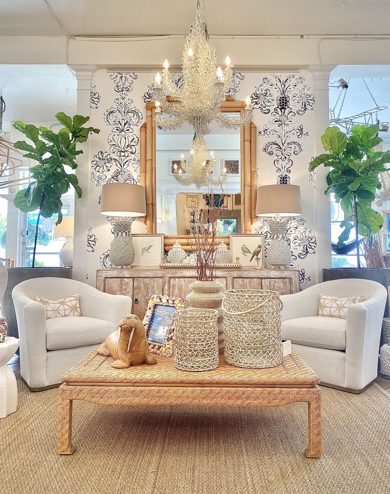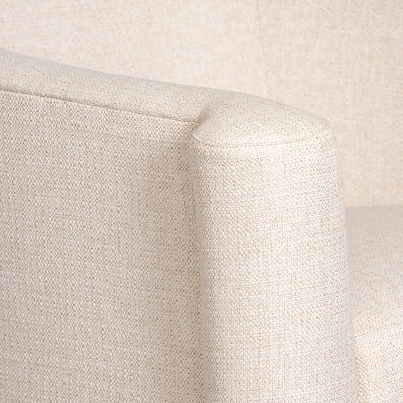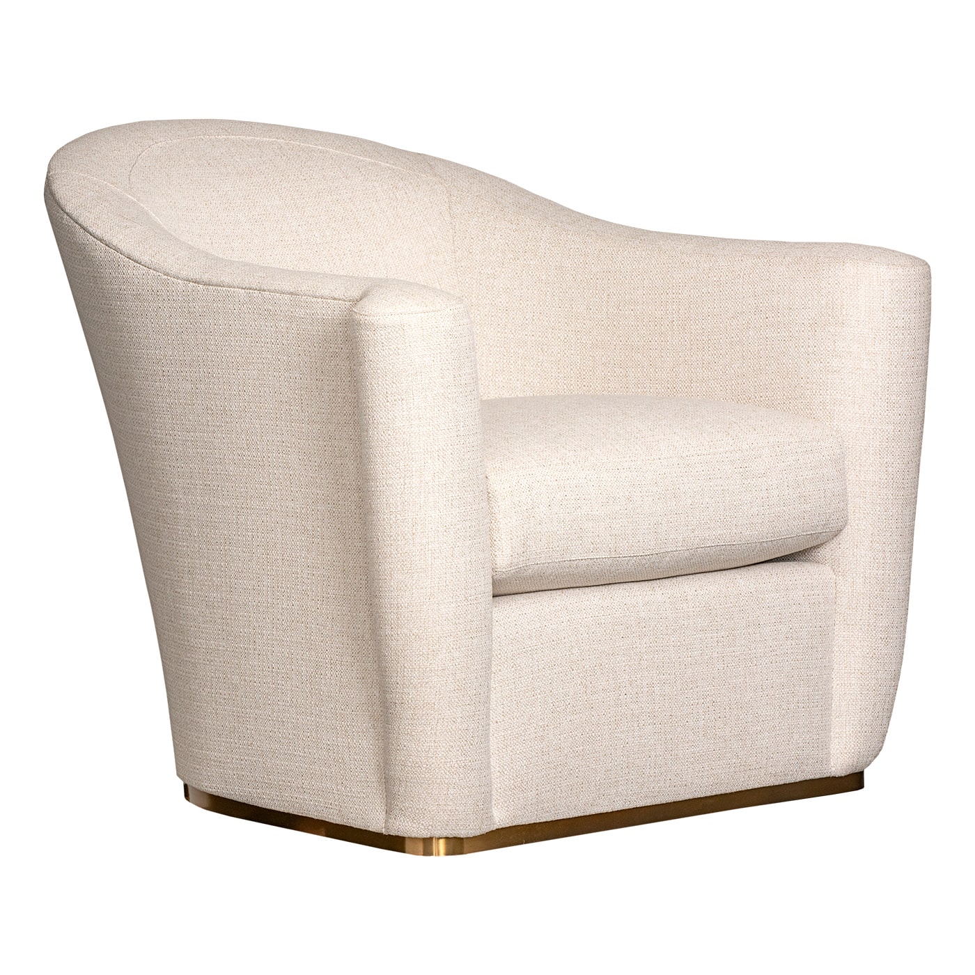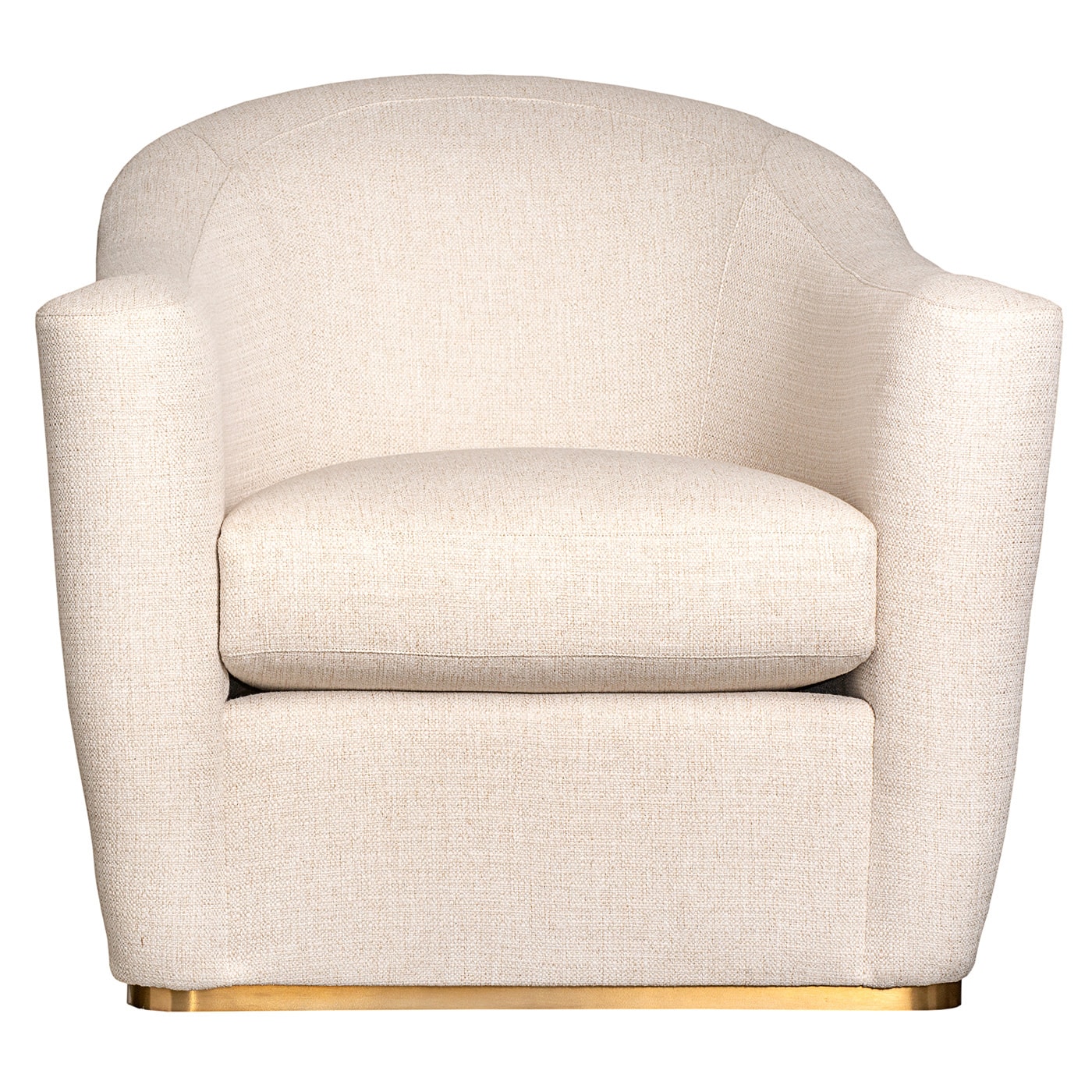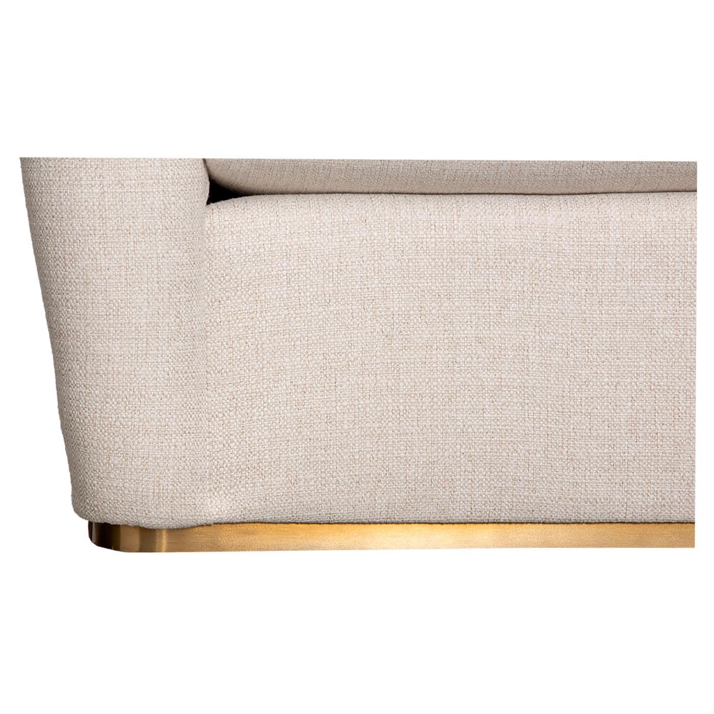 Upholstered in Alabaster Woven Fabric with Brass Clad Base