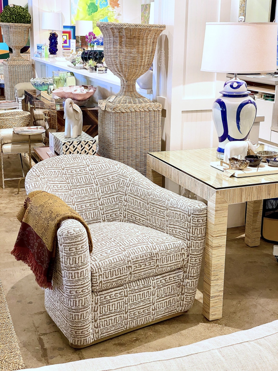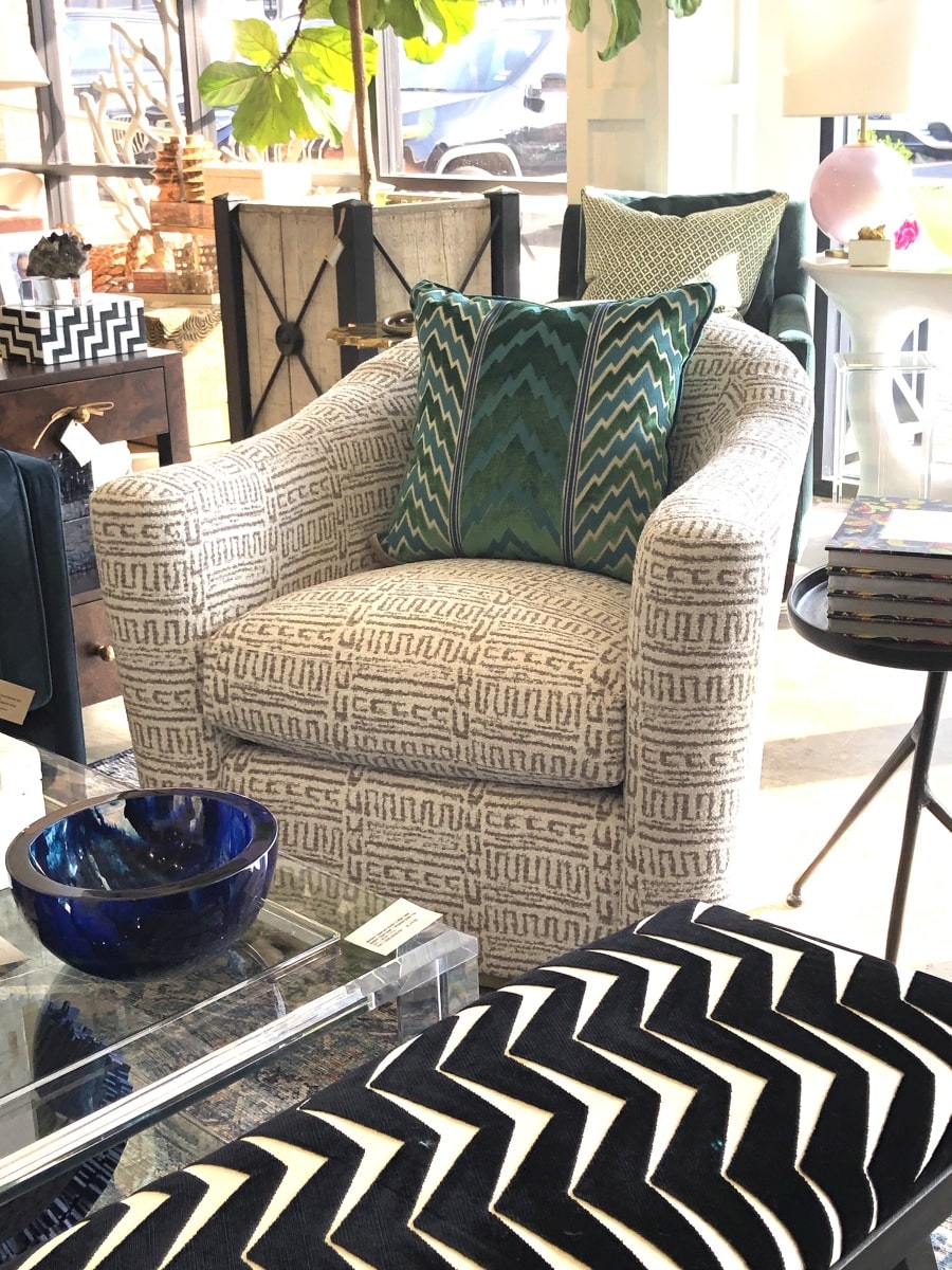 Arlette French Moderne Swivel Chair in Chenille Pattern