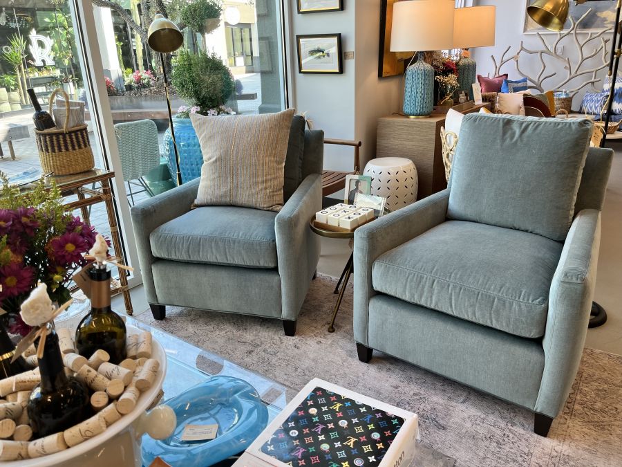 Caden Chair Upholstered in Blue Sage Velvet