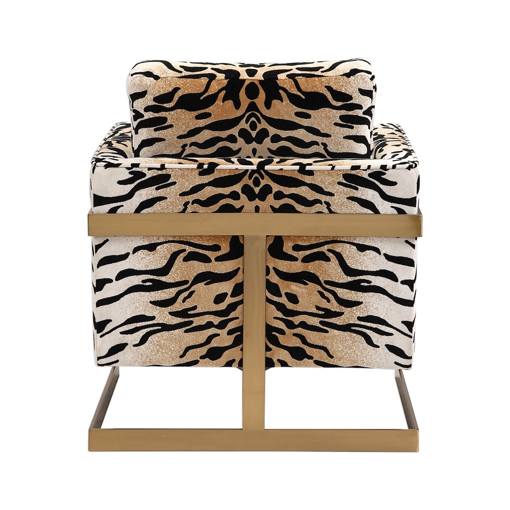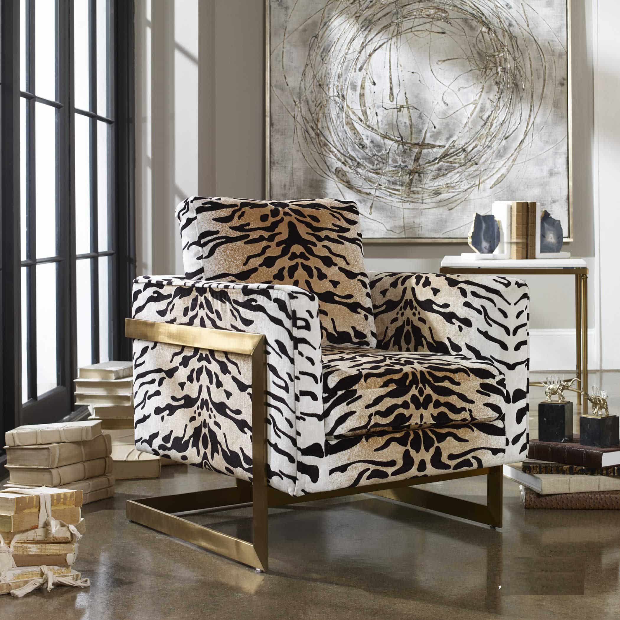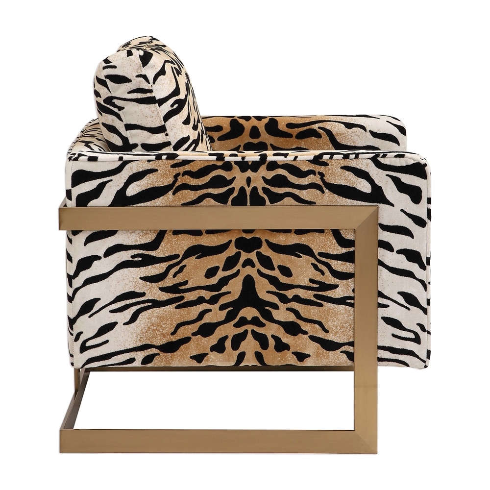 Chenille Tiger Print Lounge Chair with Brushed Brass Base