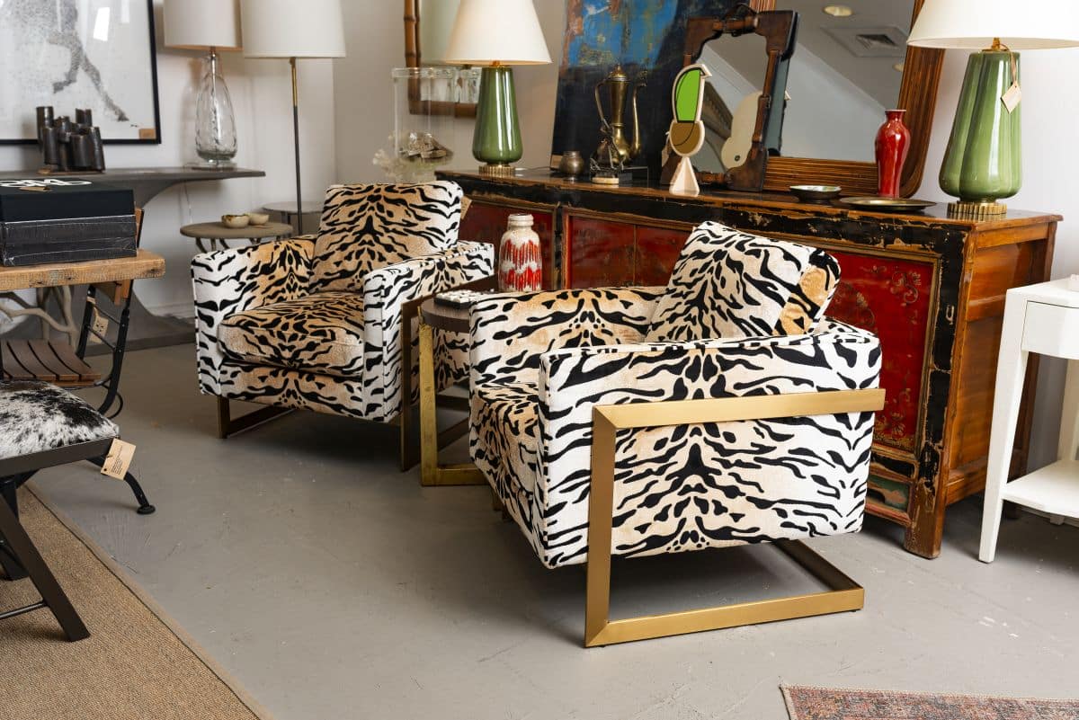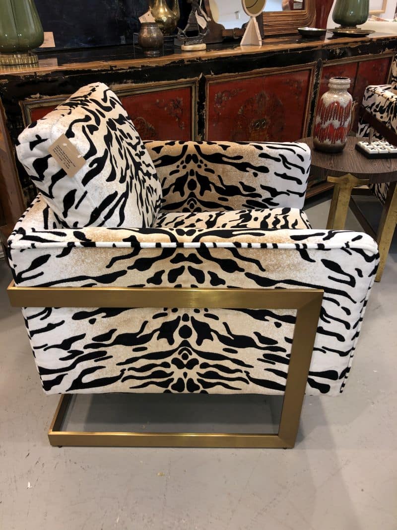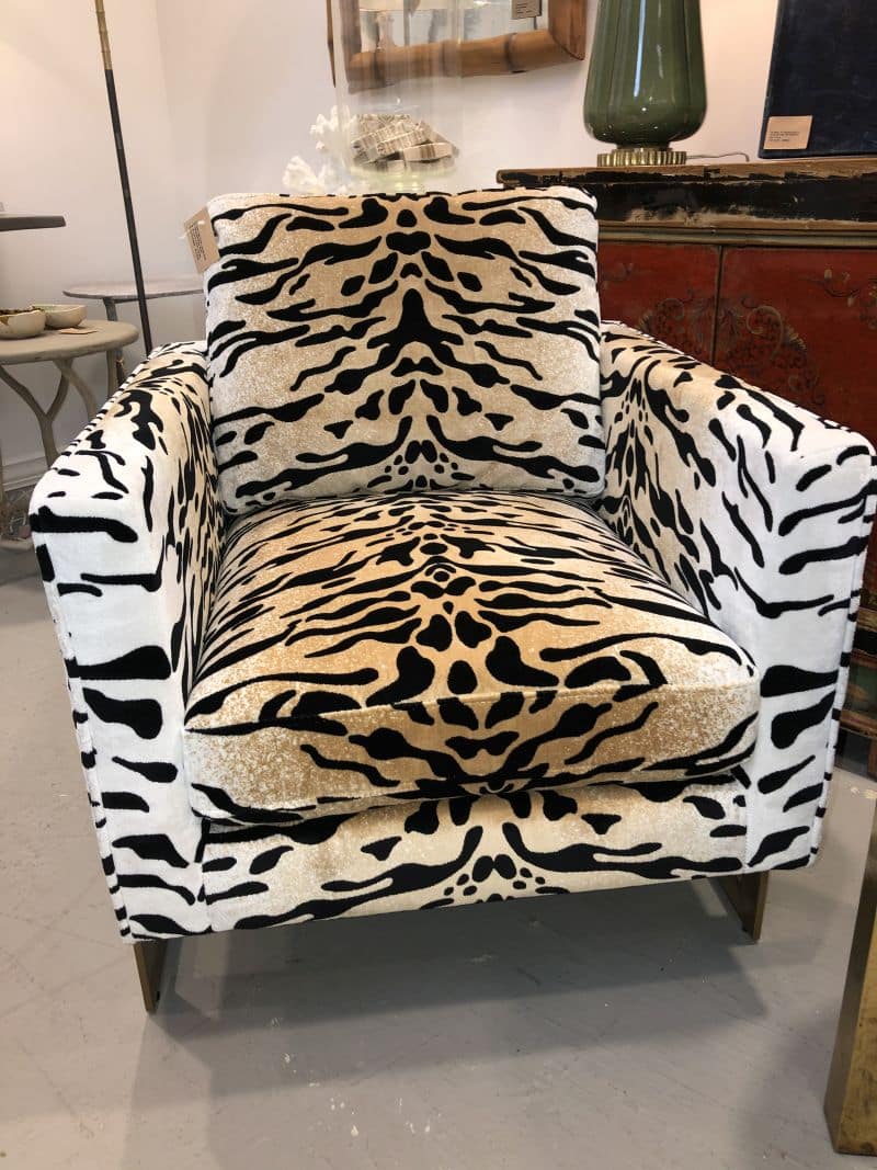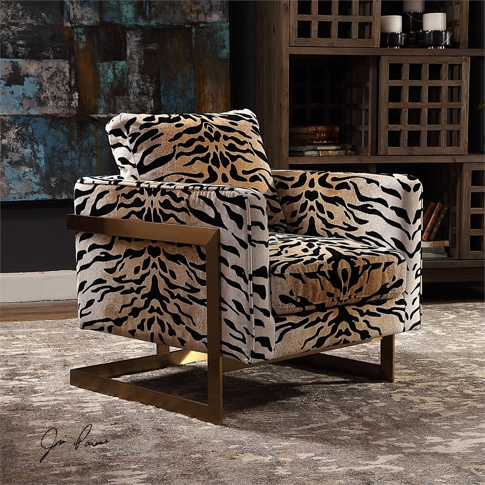 Chenille Tiger Print Lounge Chair with Brushed Brass Base
