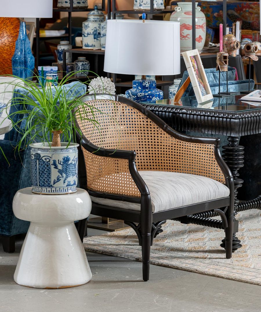 Upholstered in Danube Grey and Beige Performance Fabric Seat