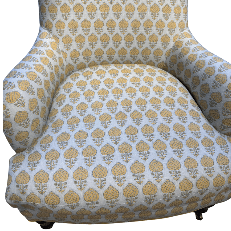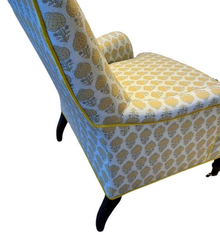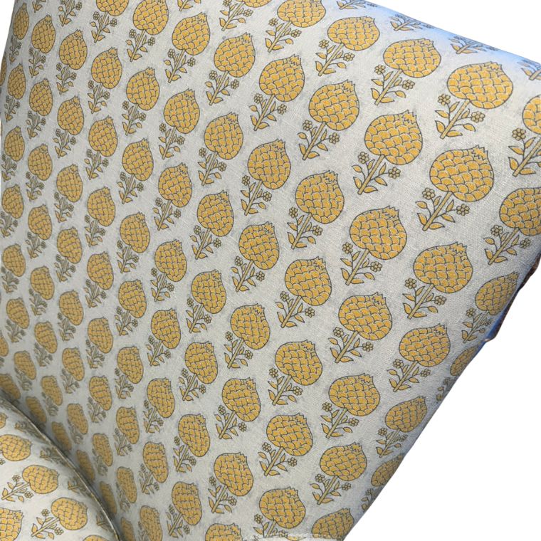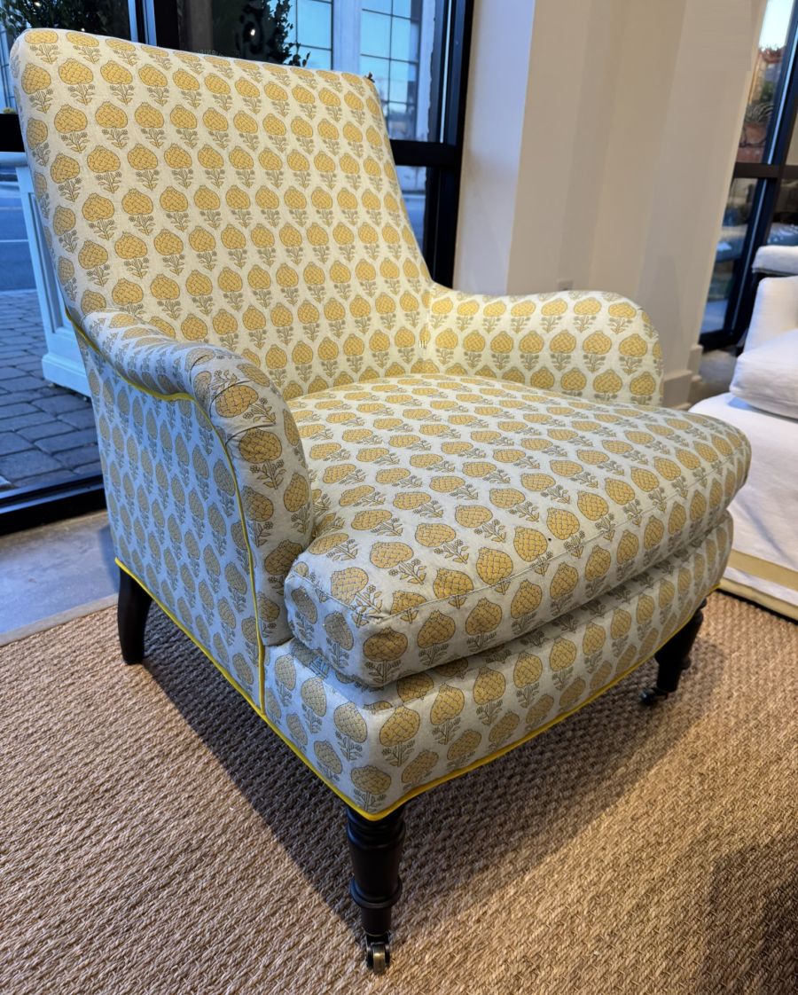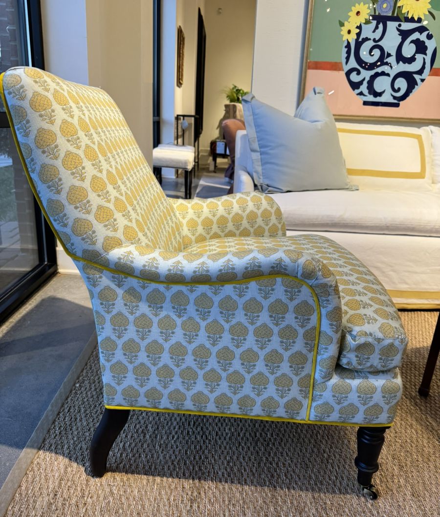 Marigold Floral Chair with Contrast Welt in Citrine Velvet