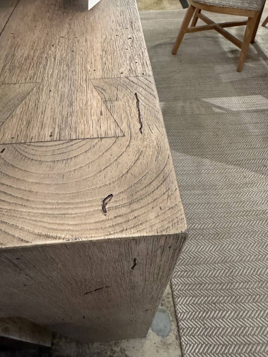 Faux Rustic Finish, Chunky Squared Legs and Dovetail Joinery