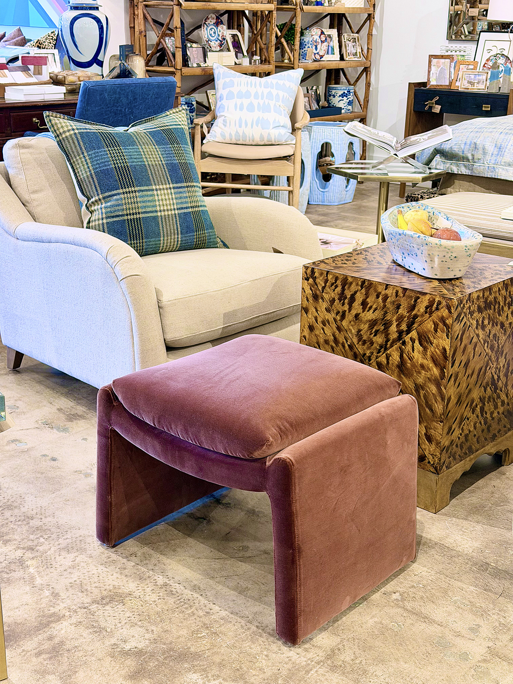 Curved Angular Auburn Velvet Ottoman