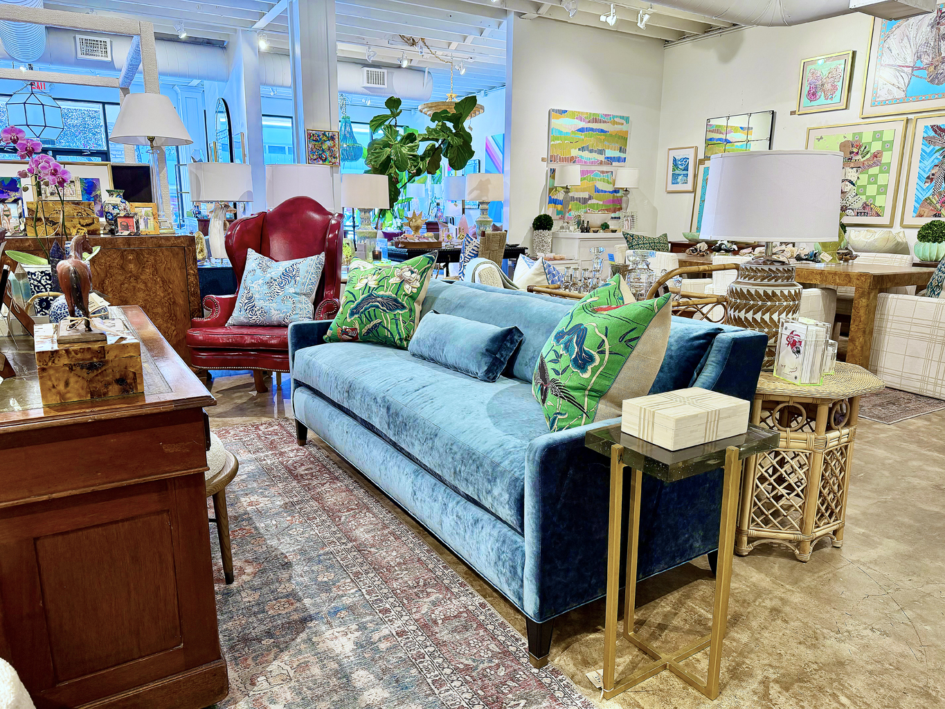 Daniel Sofa Upholstered in Tulum Peacock Velvet