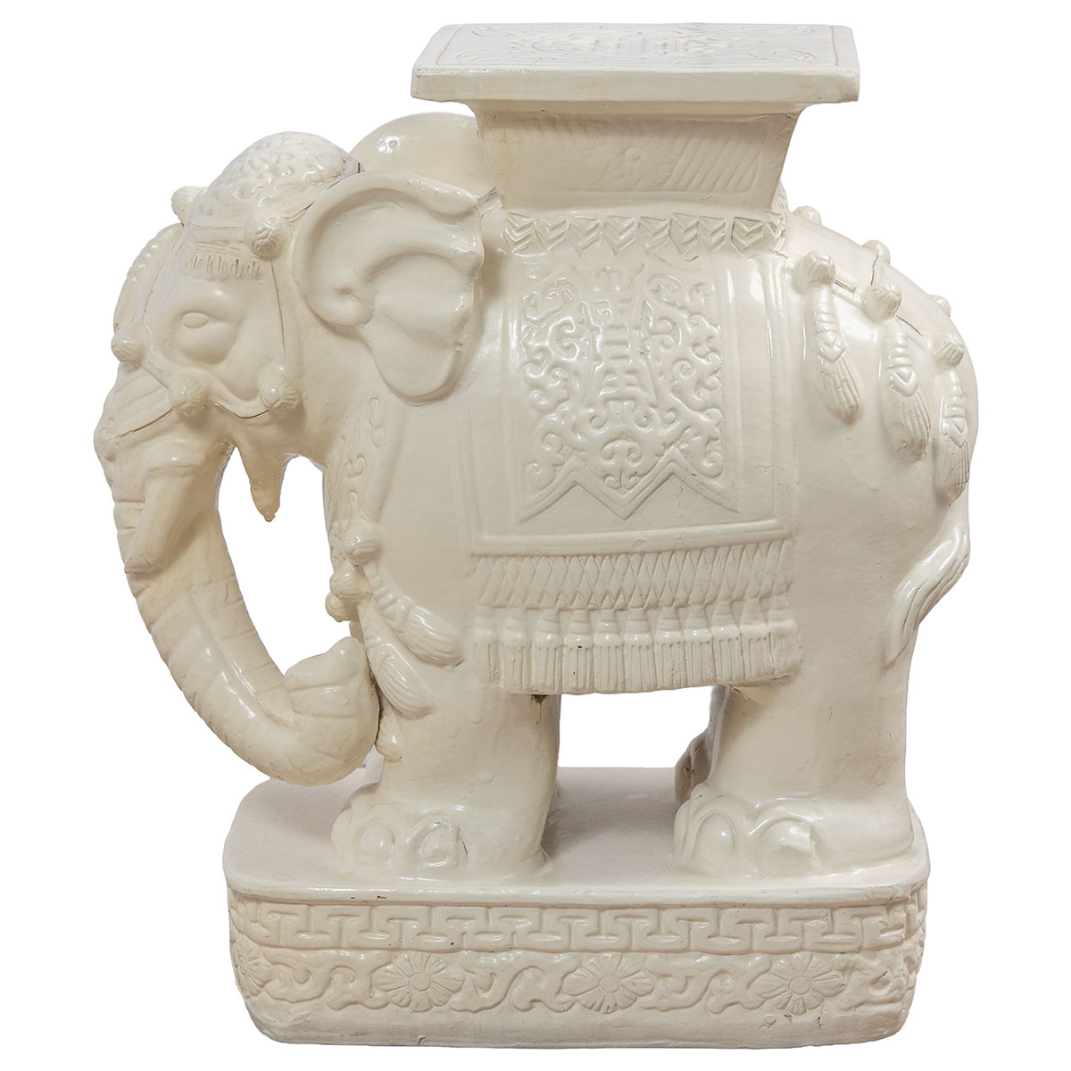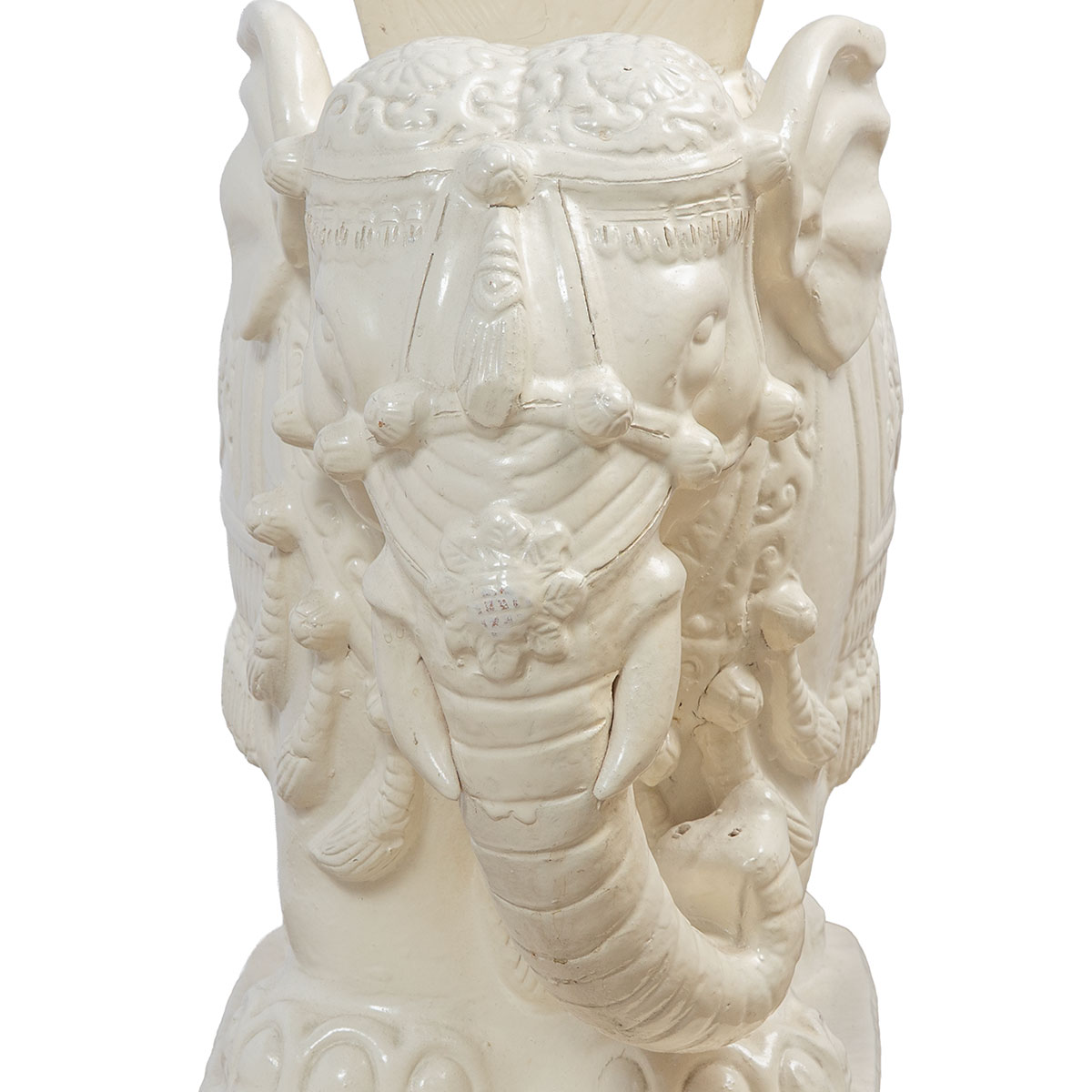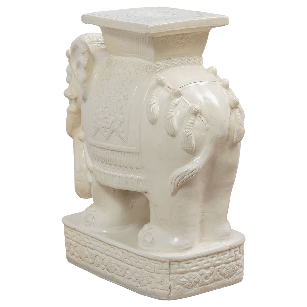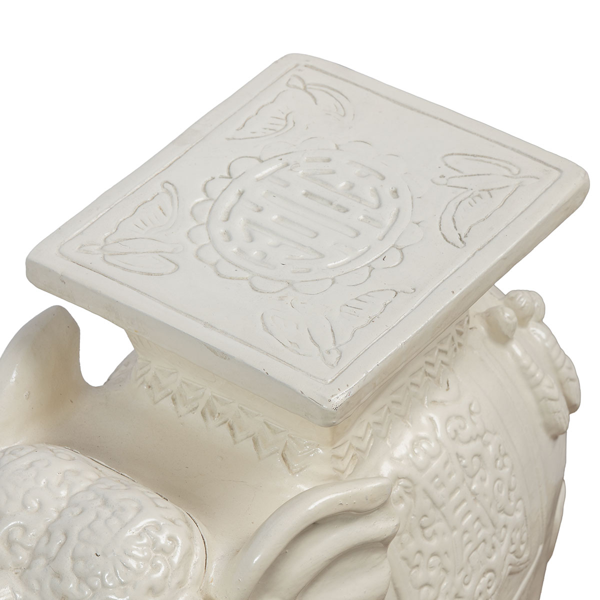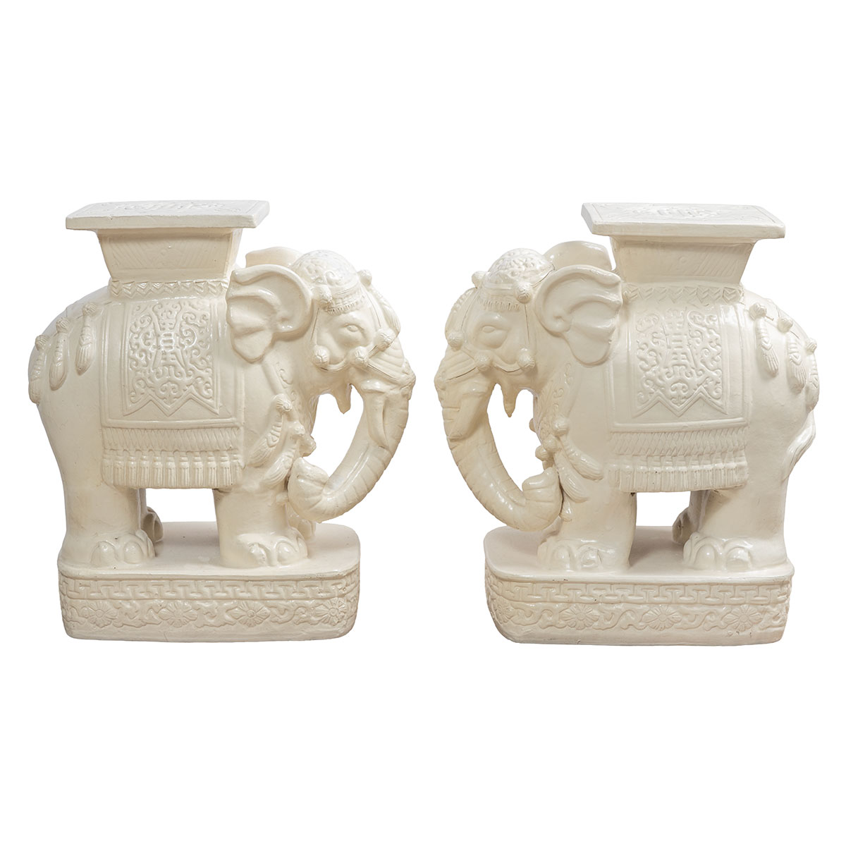 Pair of Vintage White Glazed Ceramic Elephant Stools