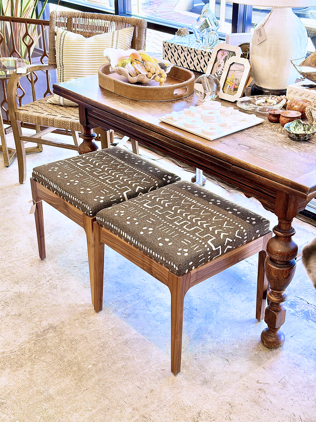 Square Walnut and Batik Stool