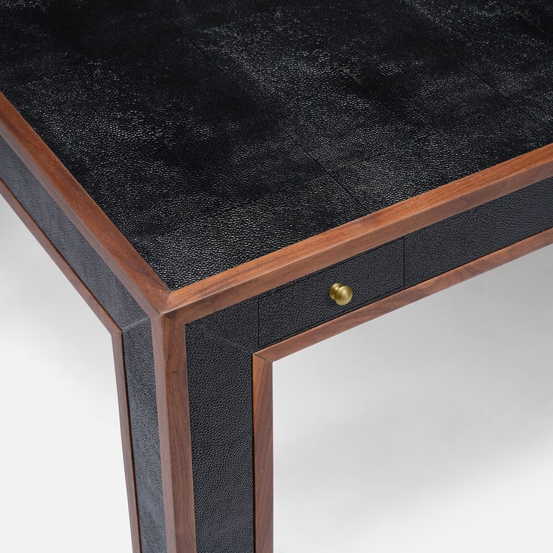 Kennedy Faux Shagreen Game Table with Veneer Border