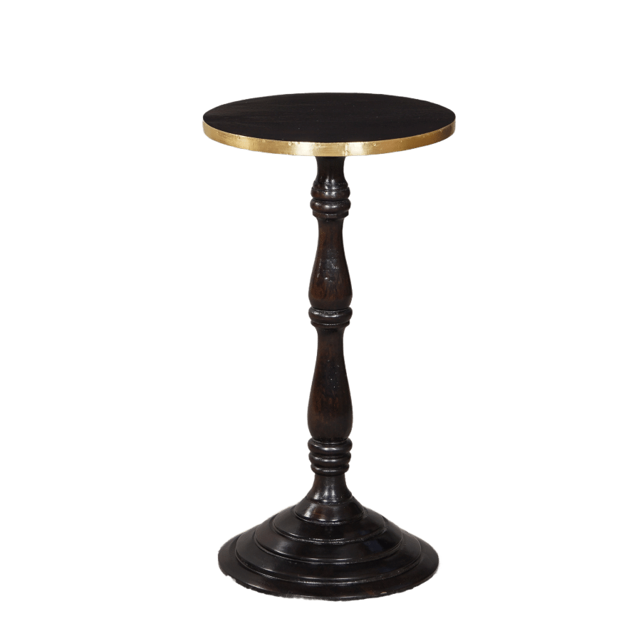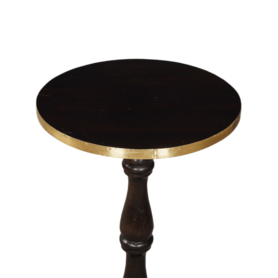 Mecox Exclusive Black Turned Wood Drinks Table with Brass Banding