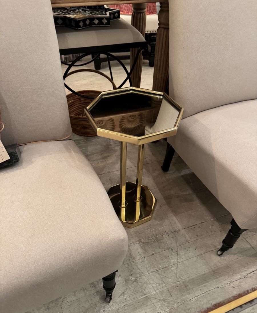 Polished Brass Octagonal Drinks Table with Mirror Insert