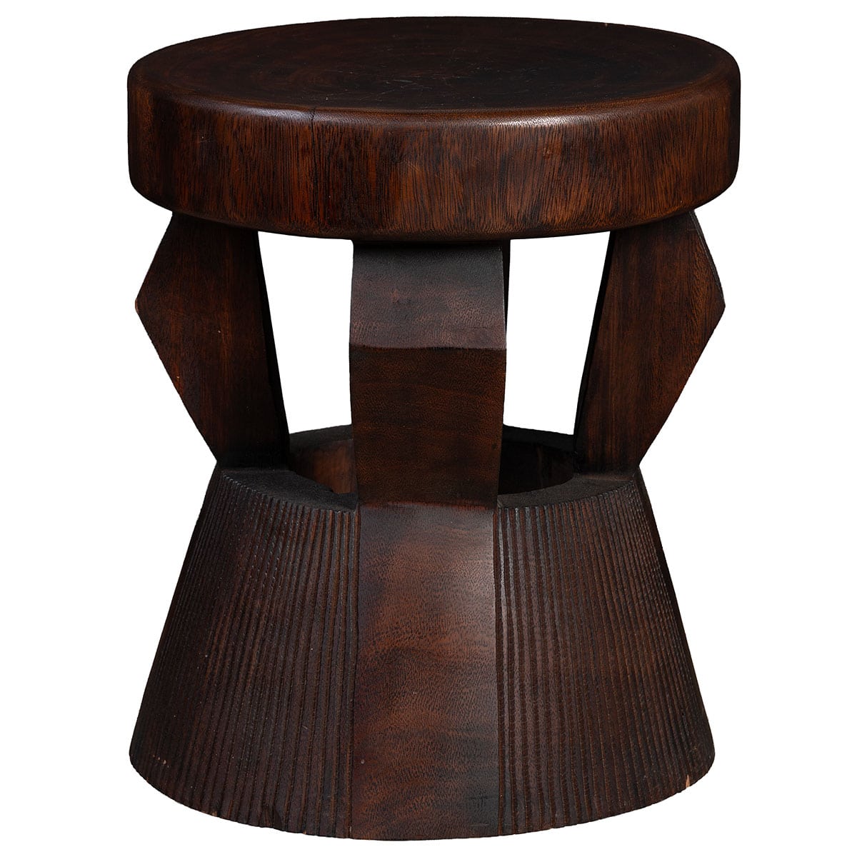 Hand Carved Suar Wood Stool in Chocolate Finish