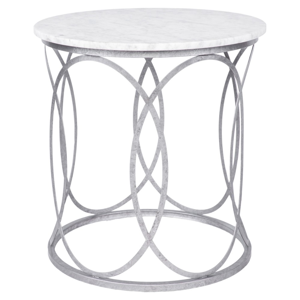 Nola Side Table in Royal Silver Finish with Carerra Marble Top