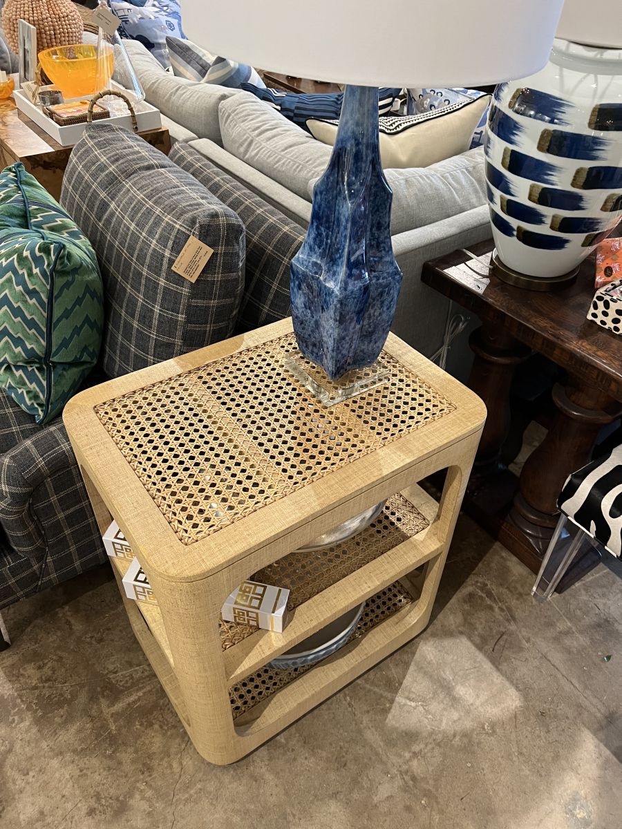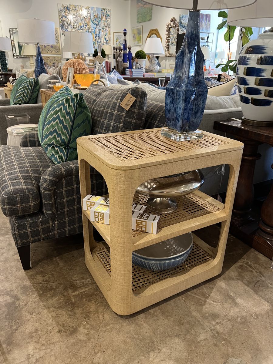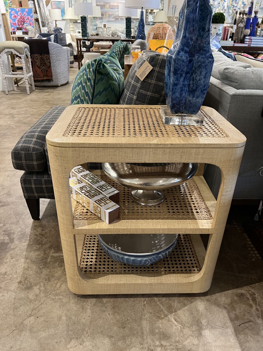 Raffia and Cane Mid-Century Style Side Table