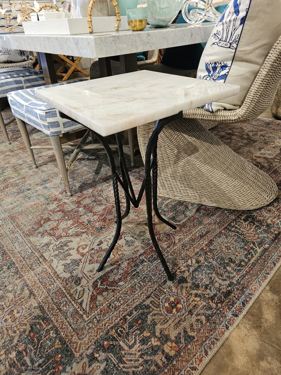Square Stone and Metal Side Table