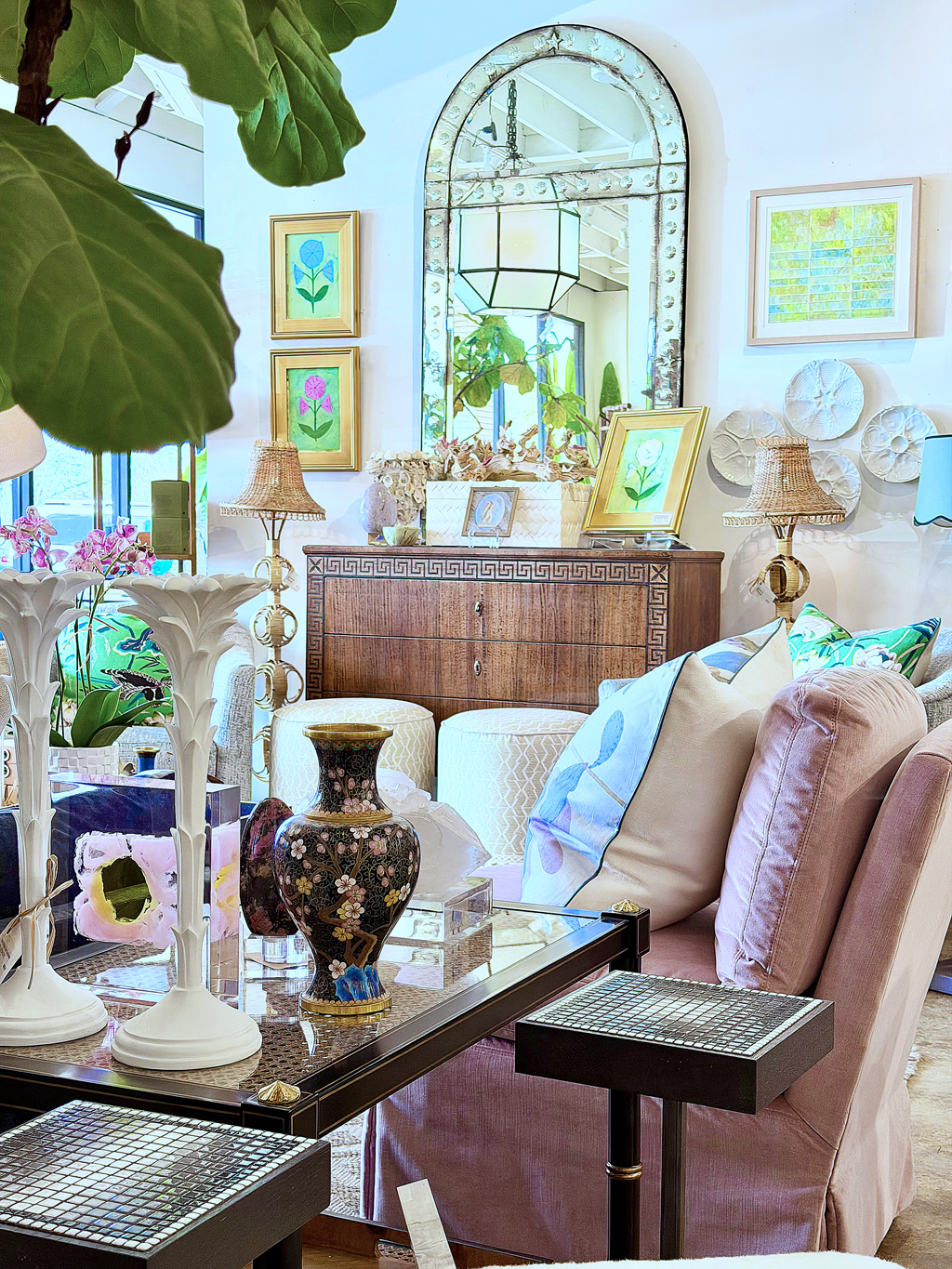 Mecox Exclusive Curved Top Pieced Venetian Pediment Jason Mirror with Bubble Decor