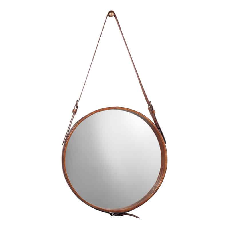 Large Round Leather Strap Mirror