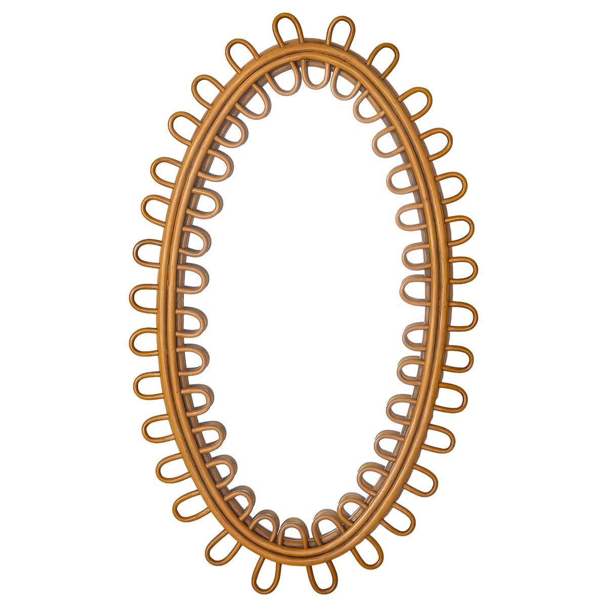 Mid-Century Style Oval Rattan and Bamboo Mirror