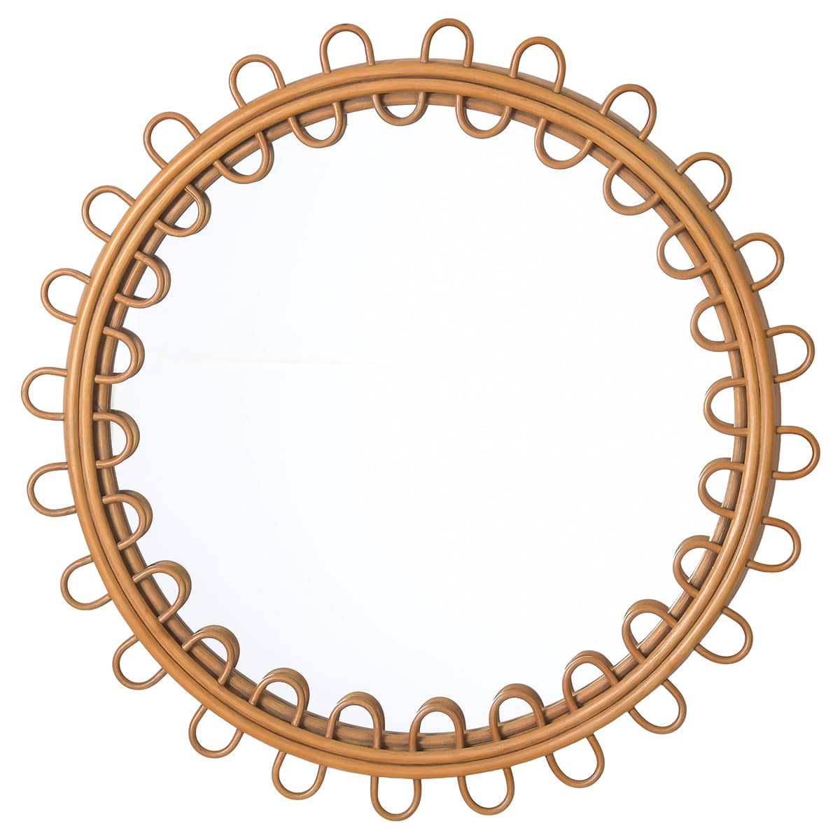 Mid-Century Style Round Rattan Scalloped Edge Mirror
