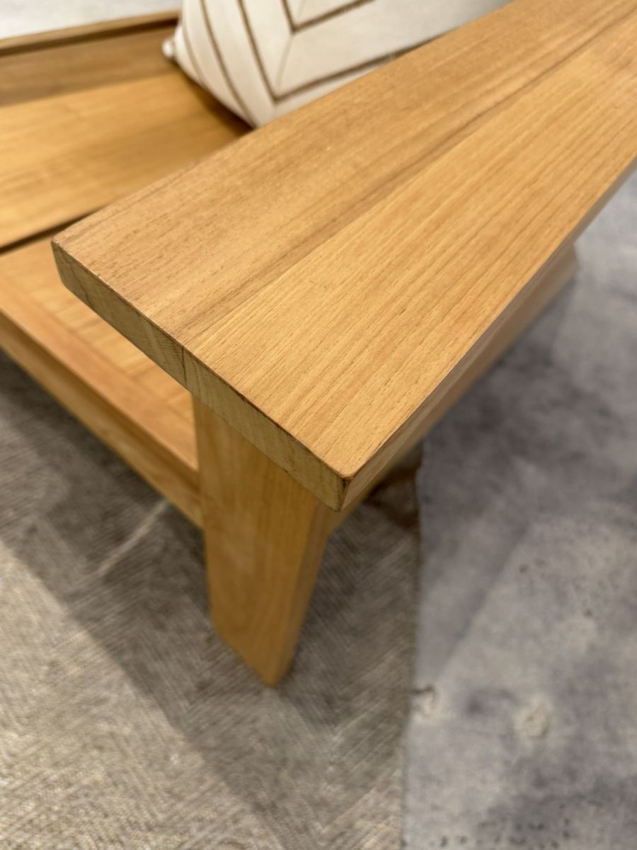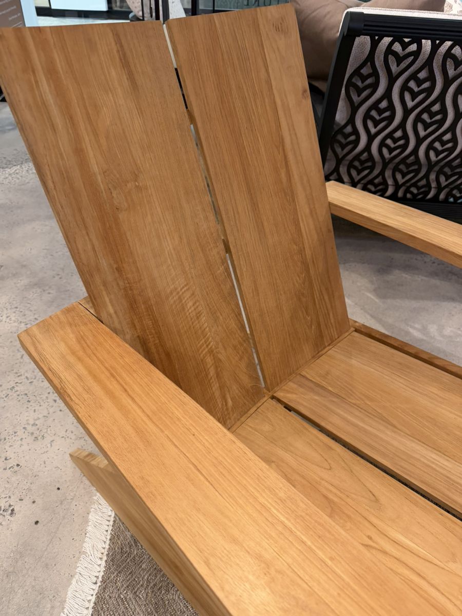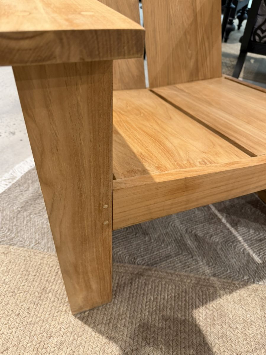 Modern Design with Wide, Tapered Track Arm, Seat and Back in Natural Teak Finish