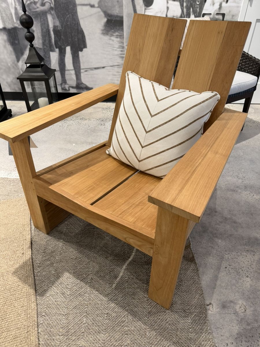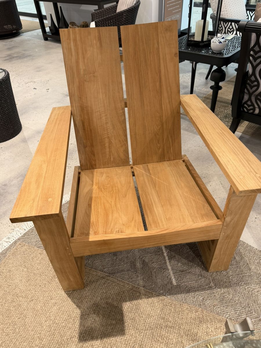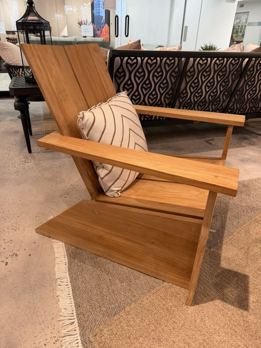 Modern Design with Wide, Tapered Track Arm, Seat and Back in Natural Teak Finish