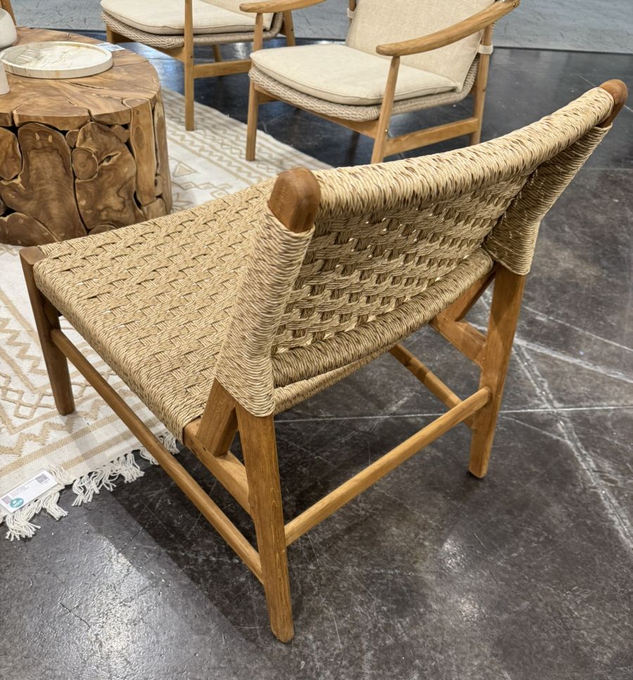 Outdoor Teak and Faux Rattan Occasional Chair