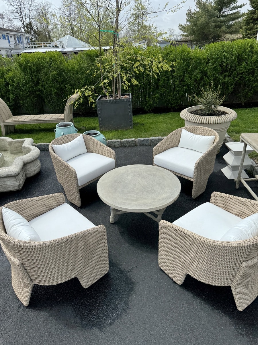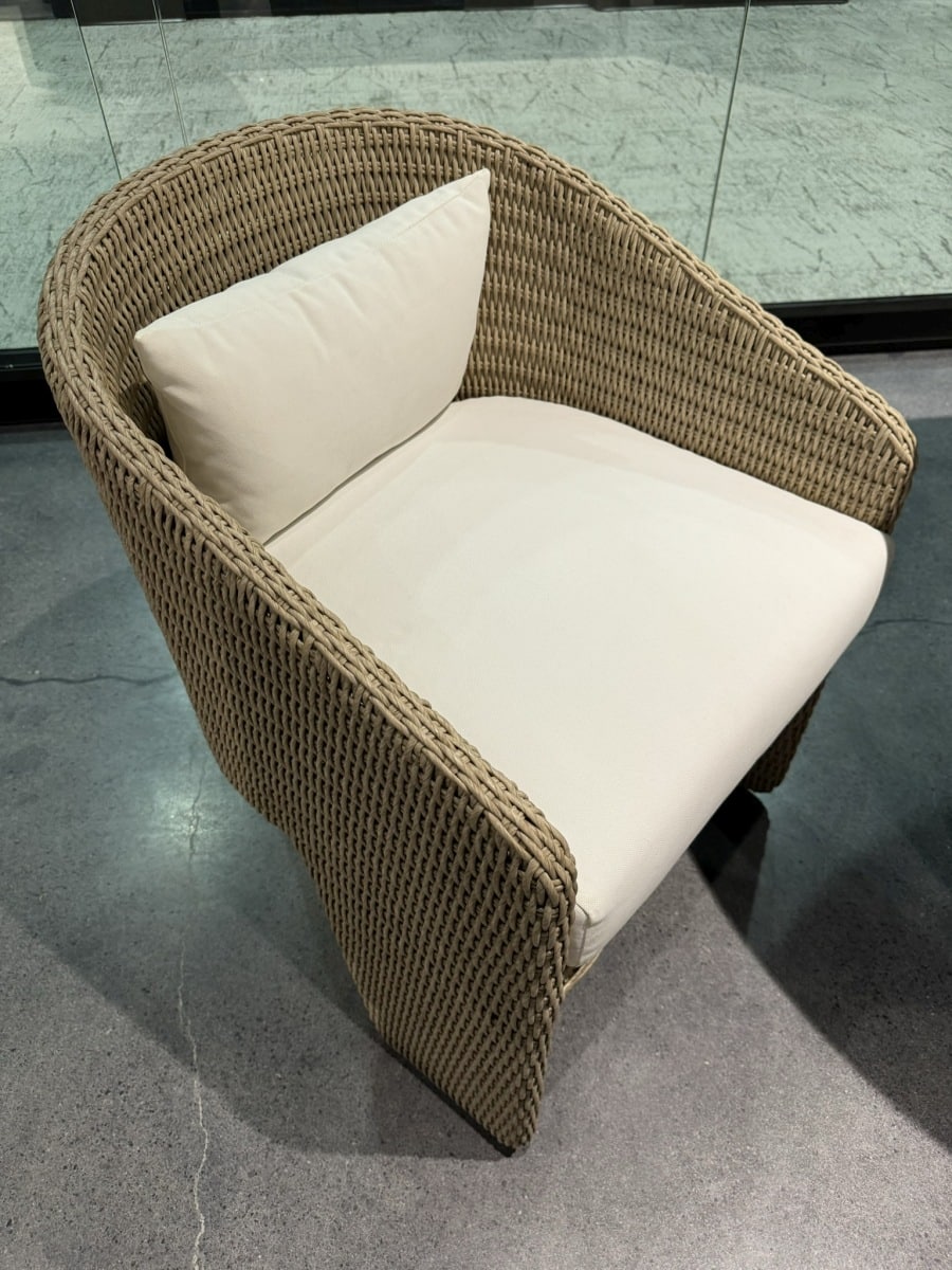 Outdoor Three Leg Chair in All Wicker Barrel Frame